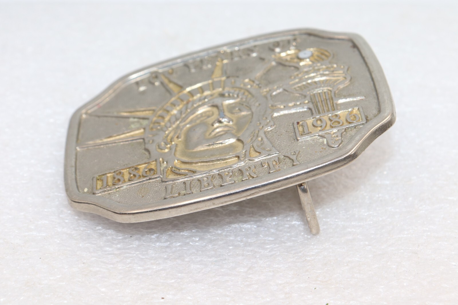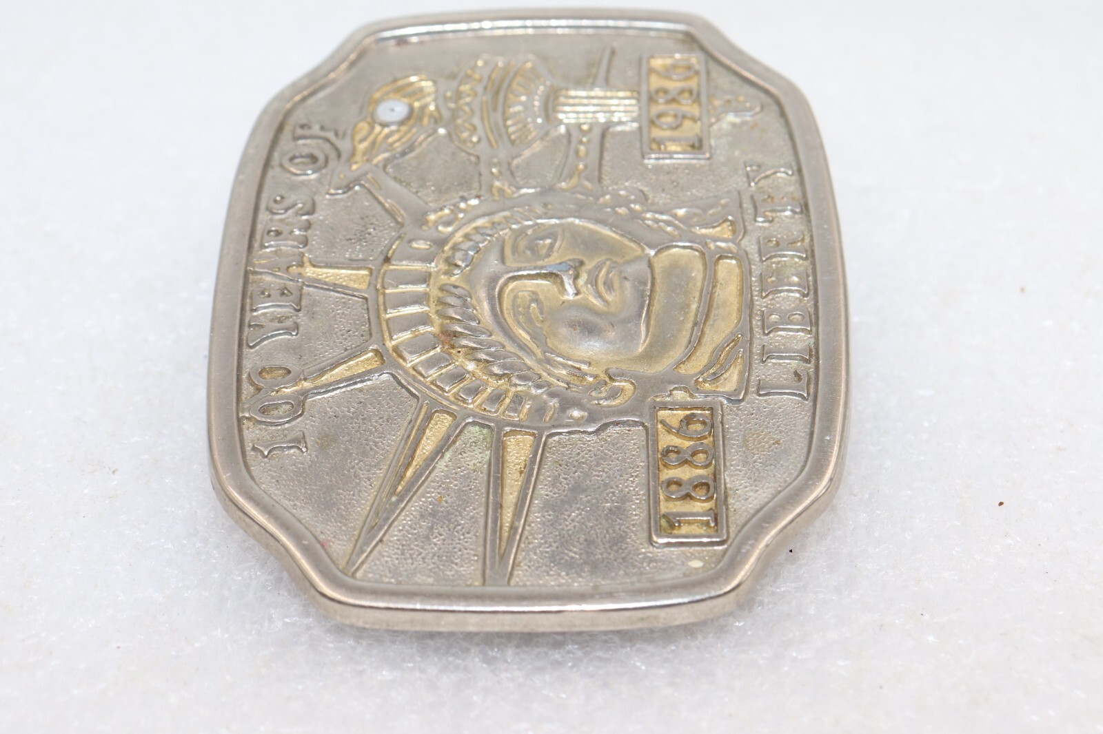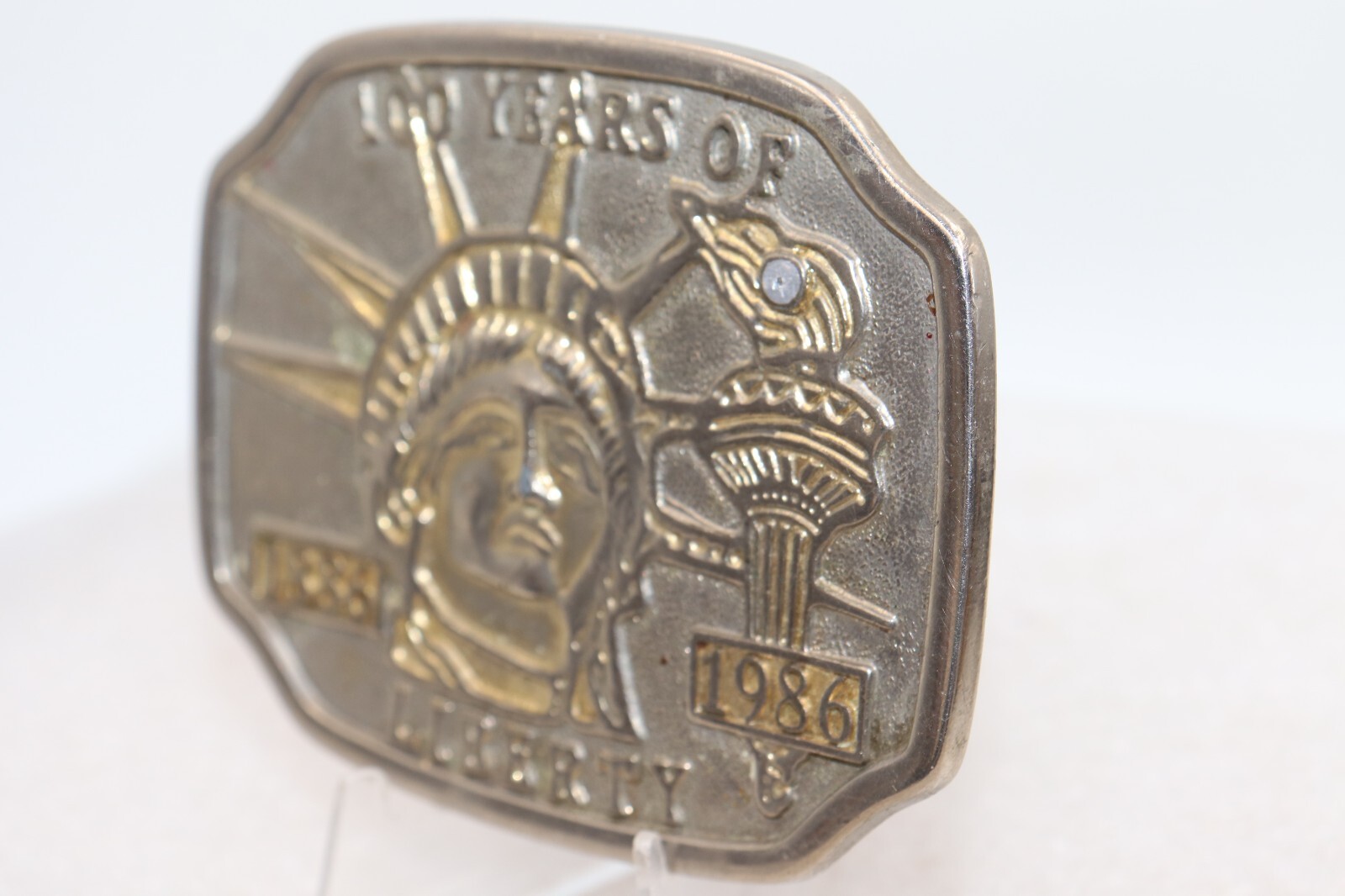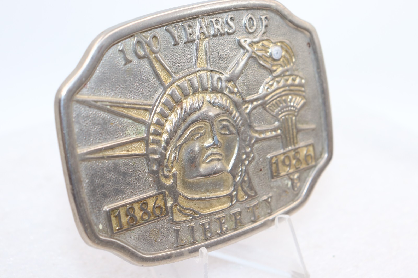 как выглядит VINTAGE 1986 100 YEARS of LIBERTY 1886-1986 Commemorative Belt Buckle фото