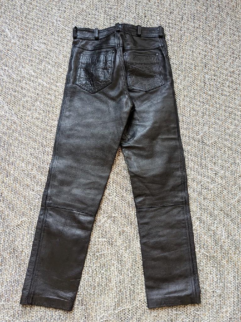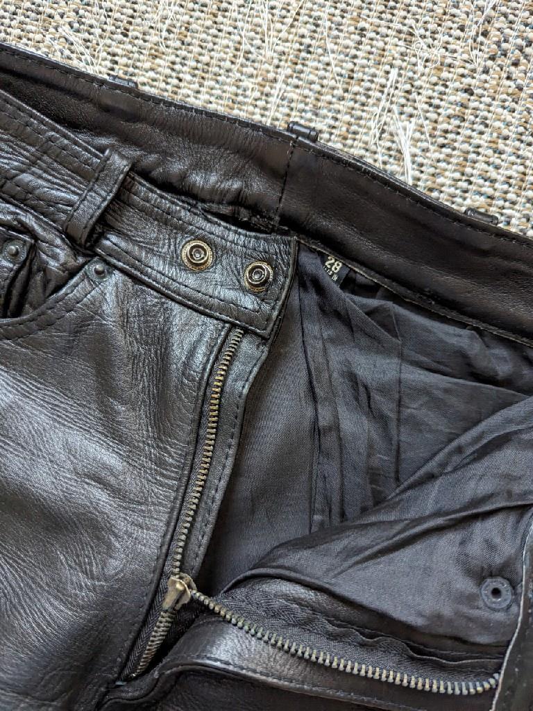 как выглядит 1990s vintage MOTORCYCLE leather pants 26x30 black jeans harley фото