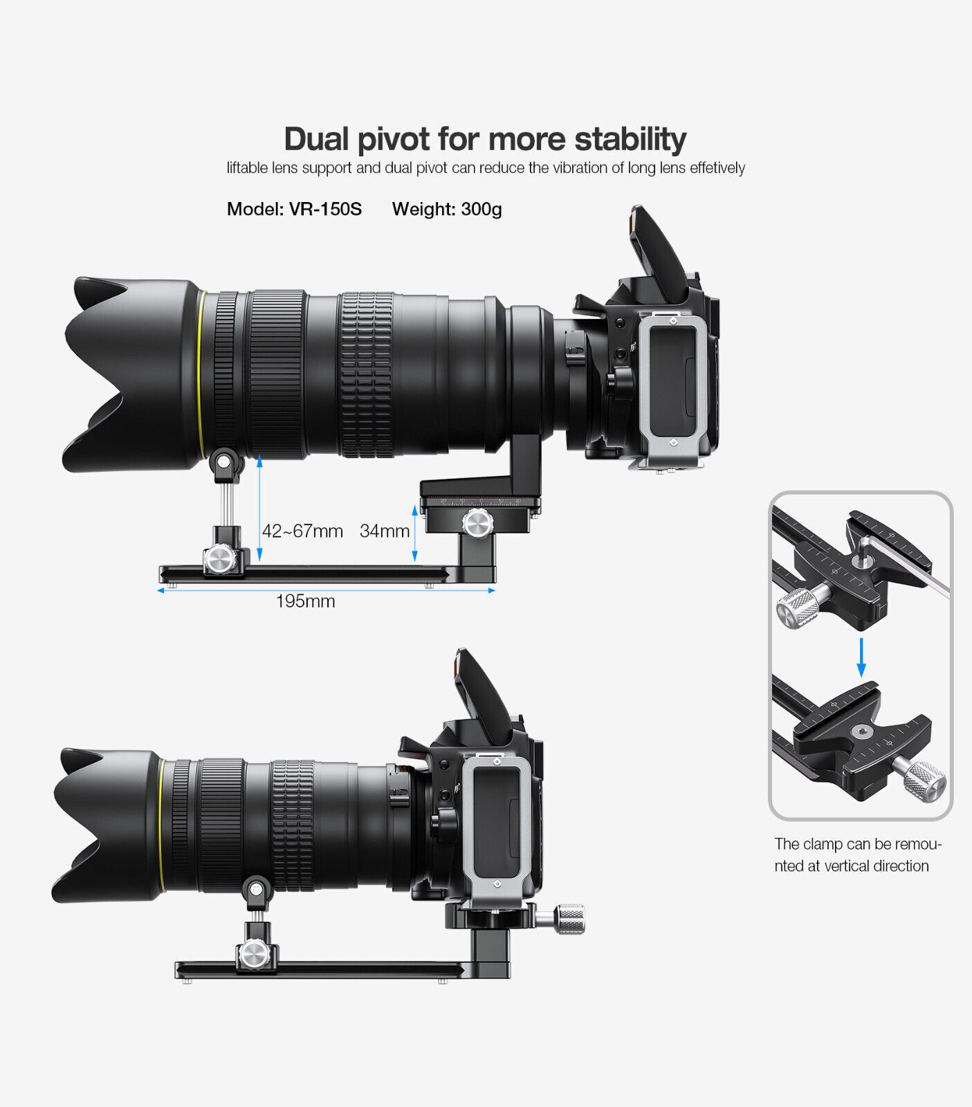 Leofoto VR-150S Updated 195mm Dual Pivot Long Lens Support, Arca