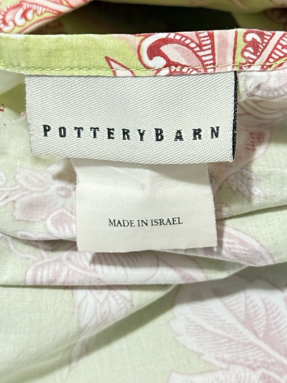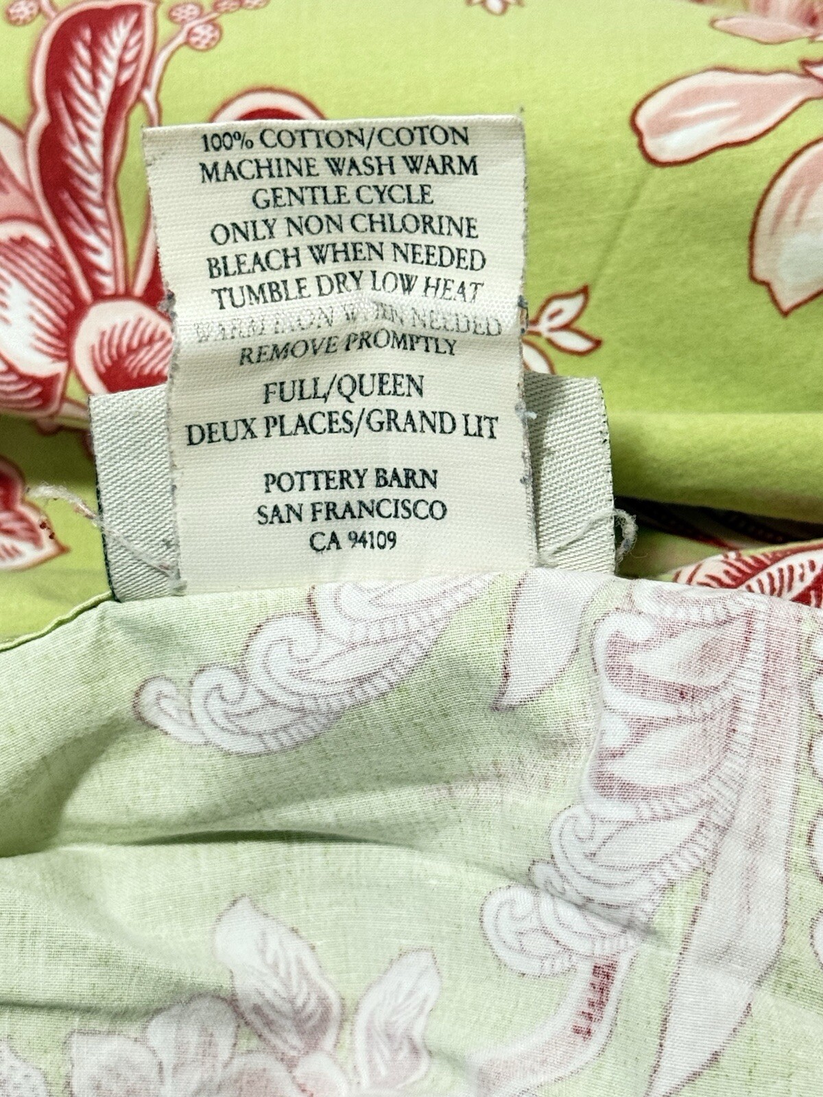 как выглядит Pottery Barn Pink Floral Green Full/Queen Duvet Cover 2 Euro Shams фото