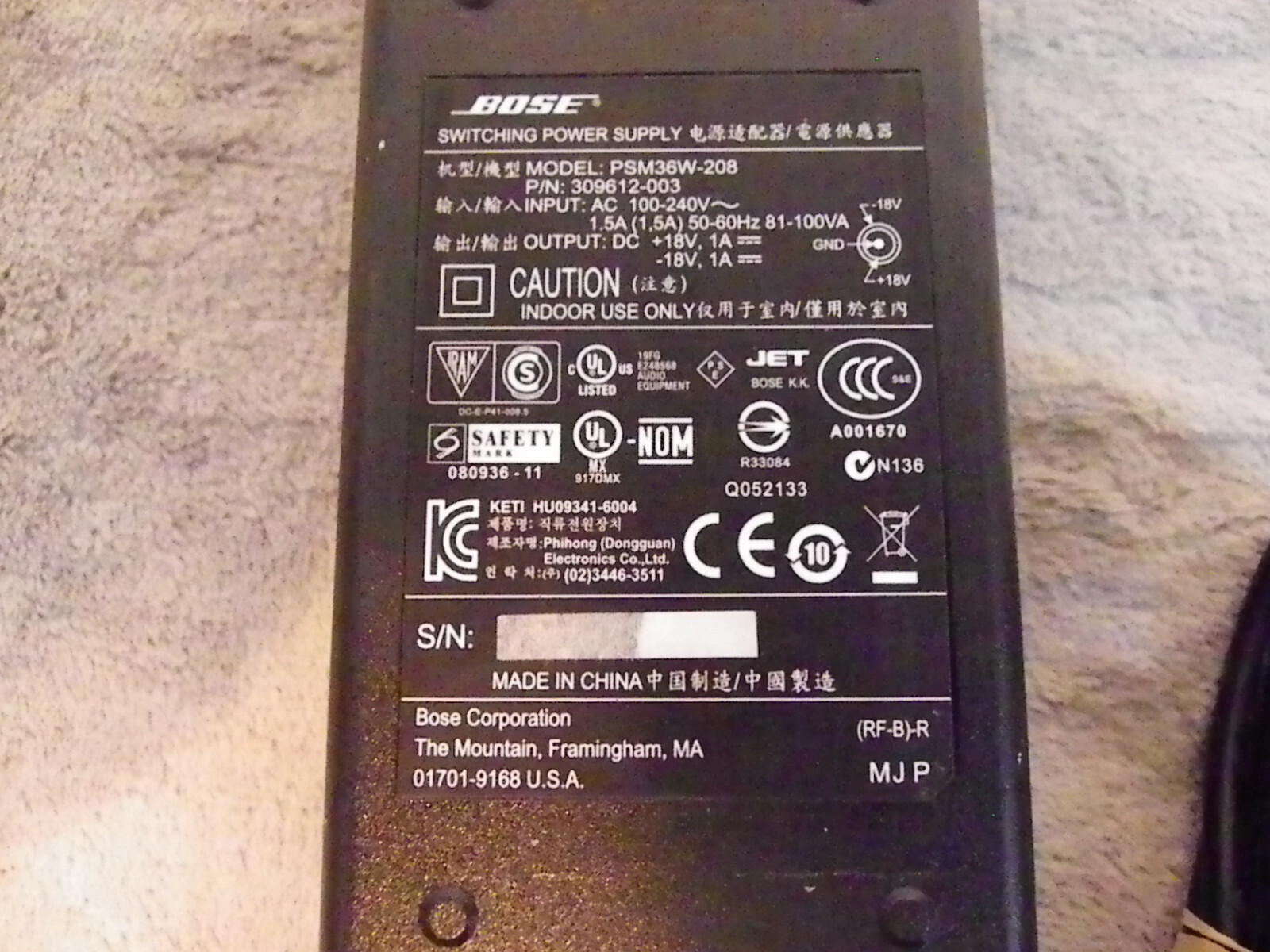 Genuine Bose Power Supply - Model PSM36W-208 - Tested Works Great