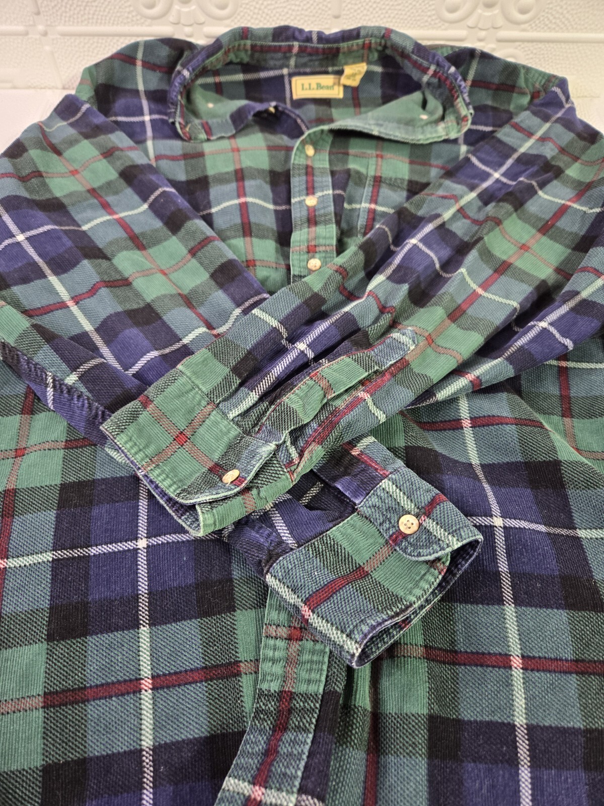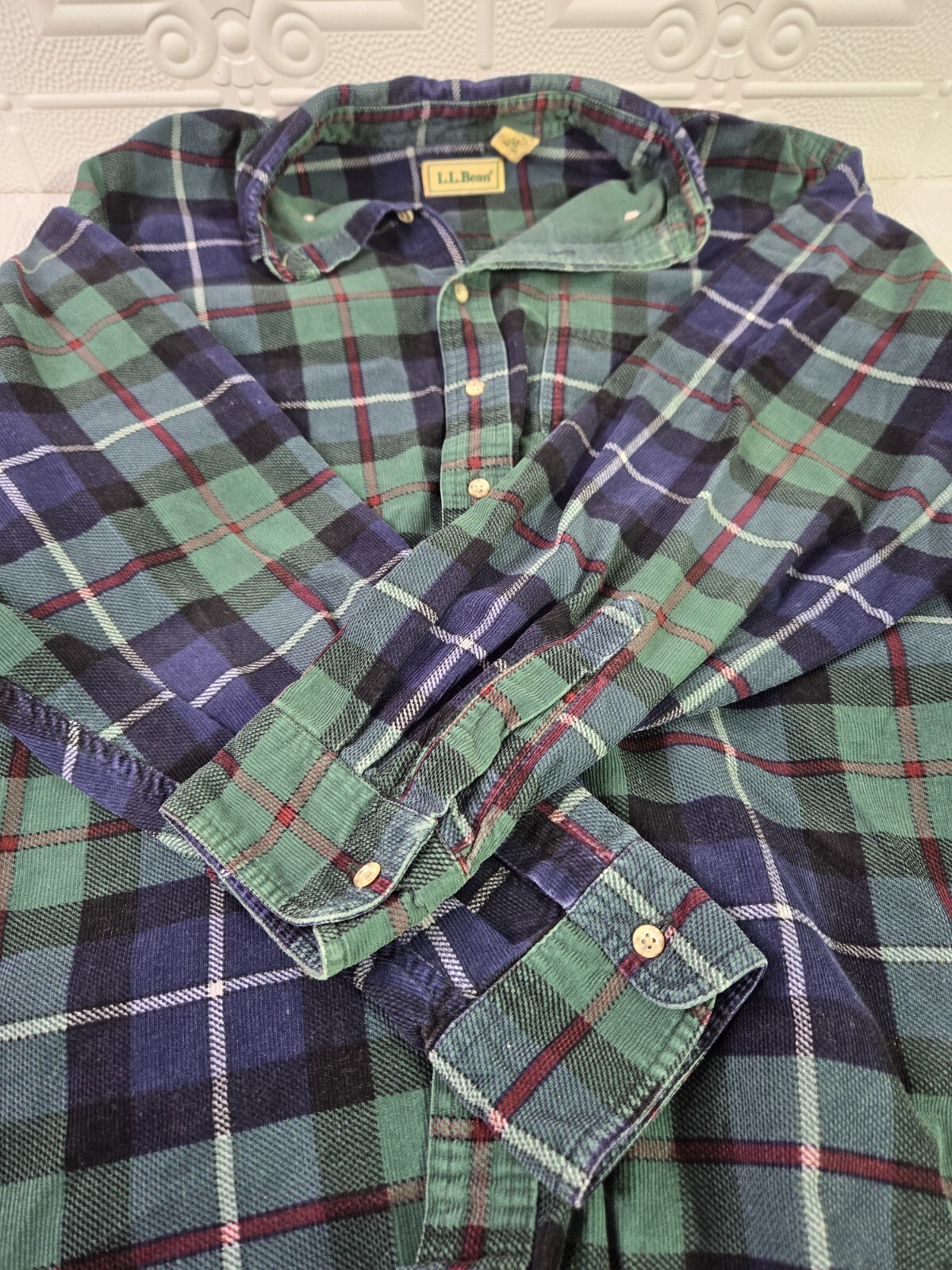 как выглядит L.L Bean Green Plaid Flannel Collared Heavy Weight Button Down Shirt Size Lg Reg фото