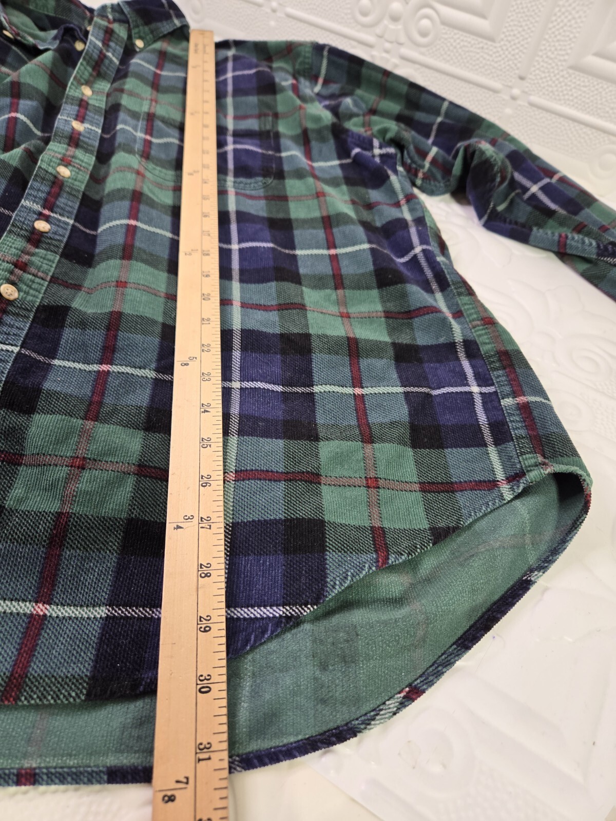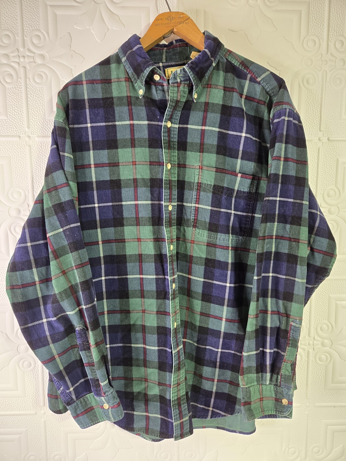 L.L Bean Green Plaid Flannel Collared Heavy Weight Button Down Shirt Size Lg Reg