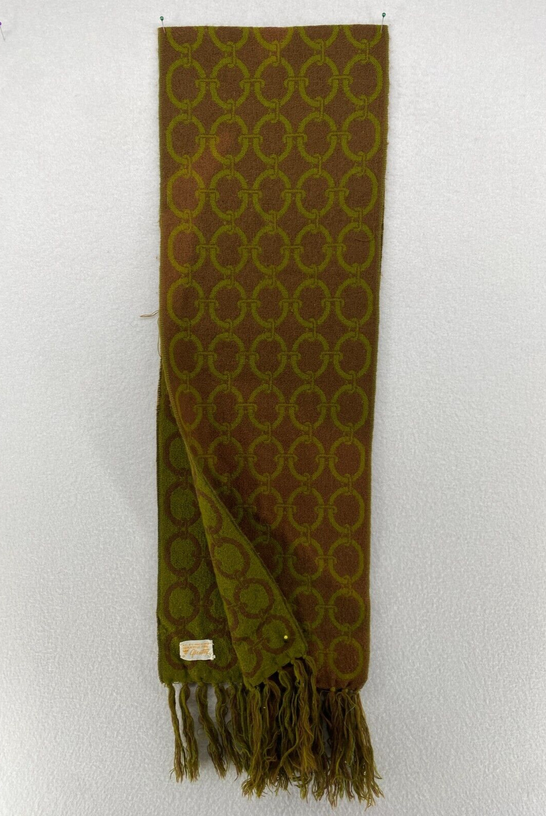 GLENTEX Scarf OS Knit Jacquard Tasseled Wrap Rectangle Brown Green Vintage