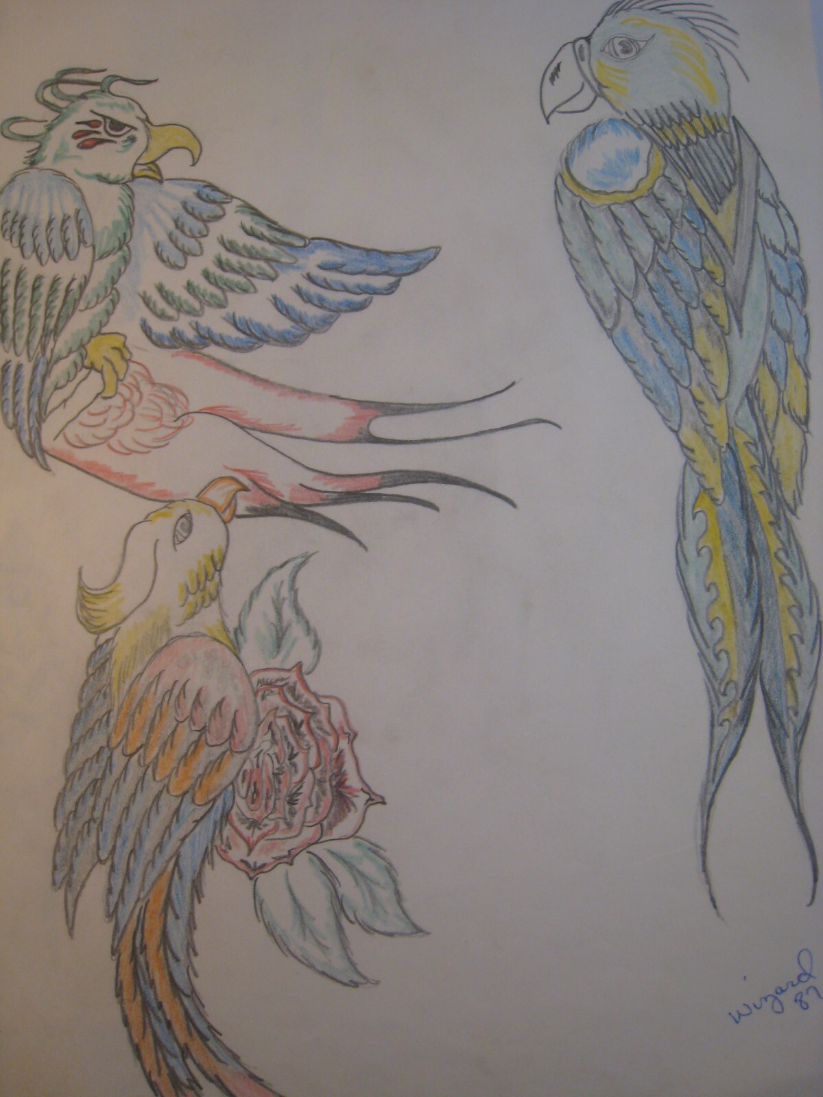 LOT OF 5 ... Tattoo Flash Original art .. Wizard .... 04