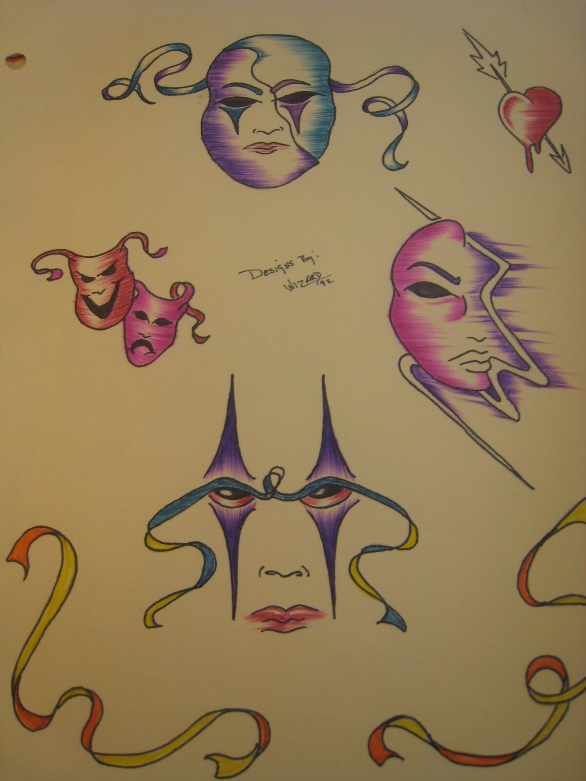 LOT OF 5 ... Tattoo Flash Original art .. Wizard .... 06