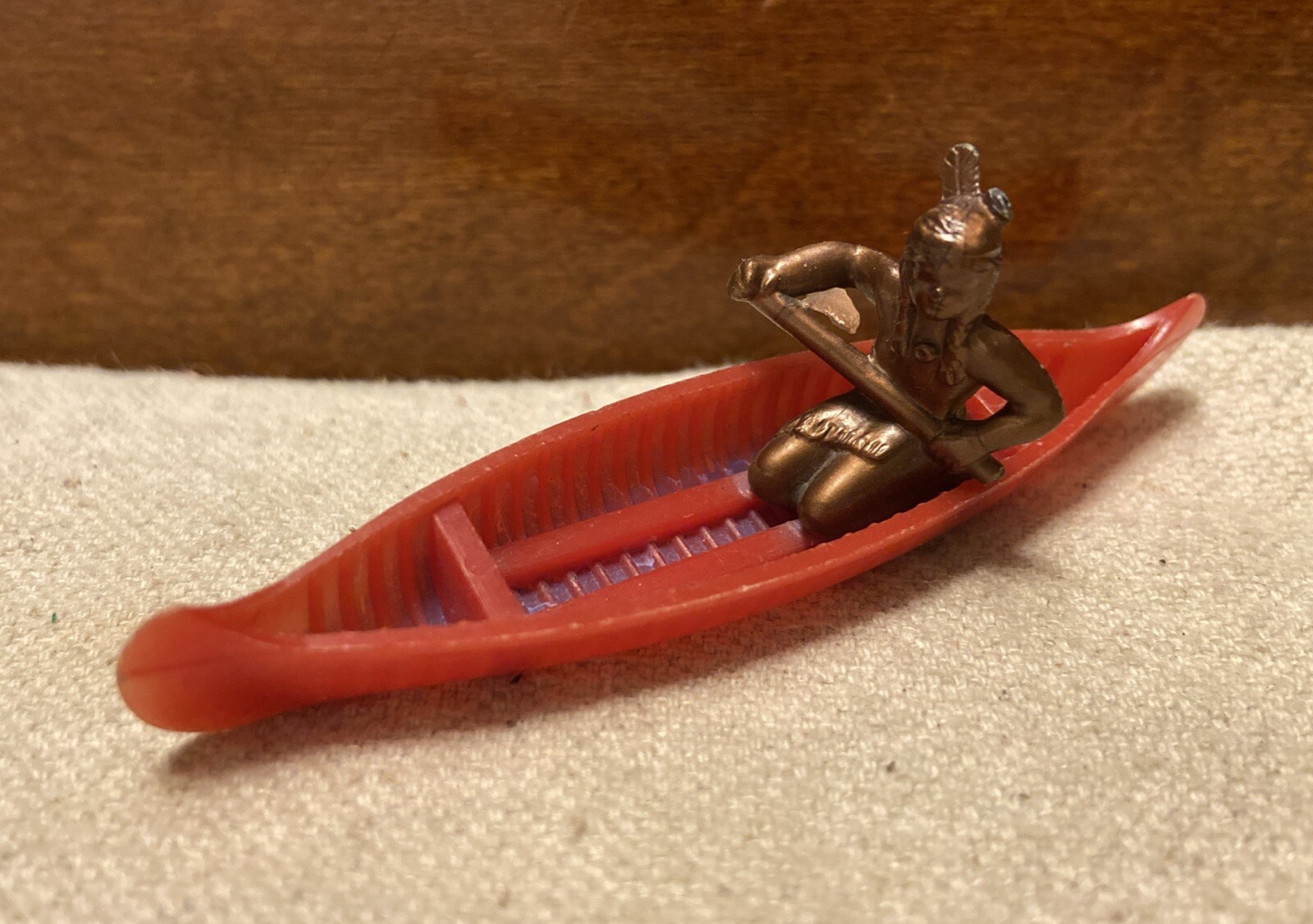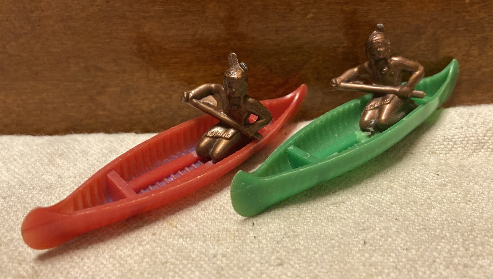 Pair Vintage 3-1/4 Hard Plastic Toy Canoes W/Indians - Unbranded