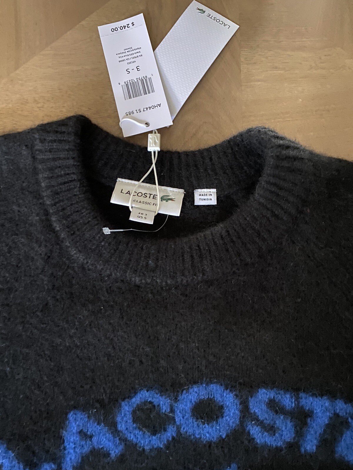 240 NWT Lacoste Men s Logo Dog Rash Wool Blend Sweater Sz S EU 3 Black