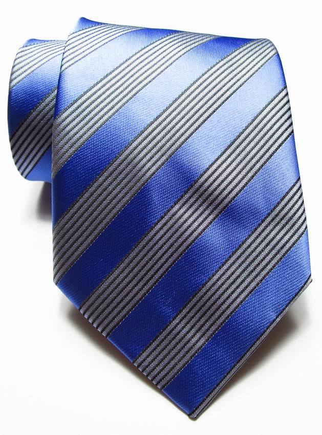 New Classic Striped Blue Gray JACQUARD WOVEN 100 Silk Men's Tie Necktie