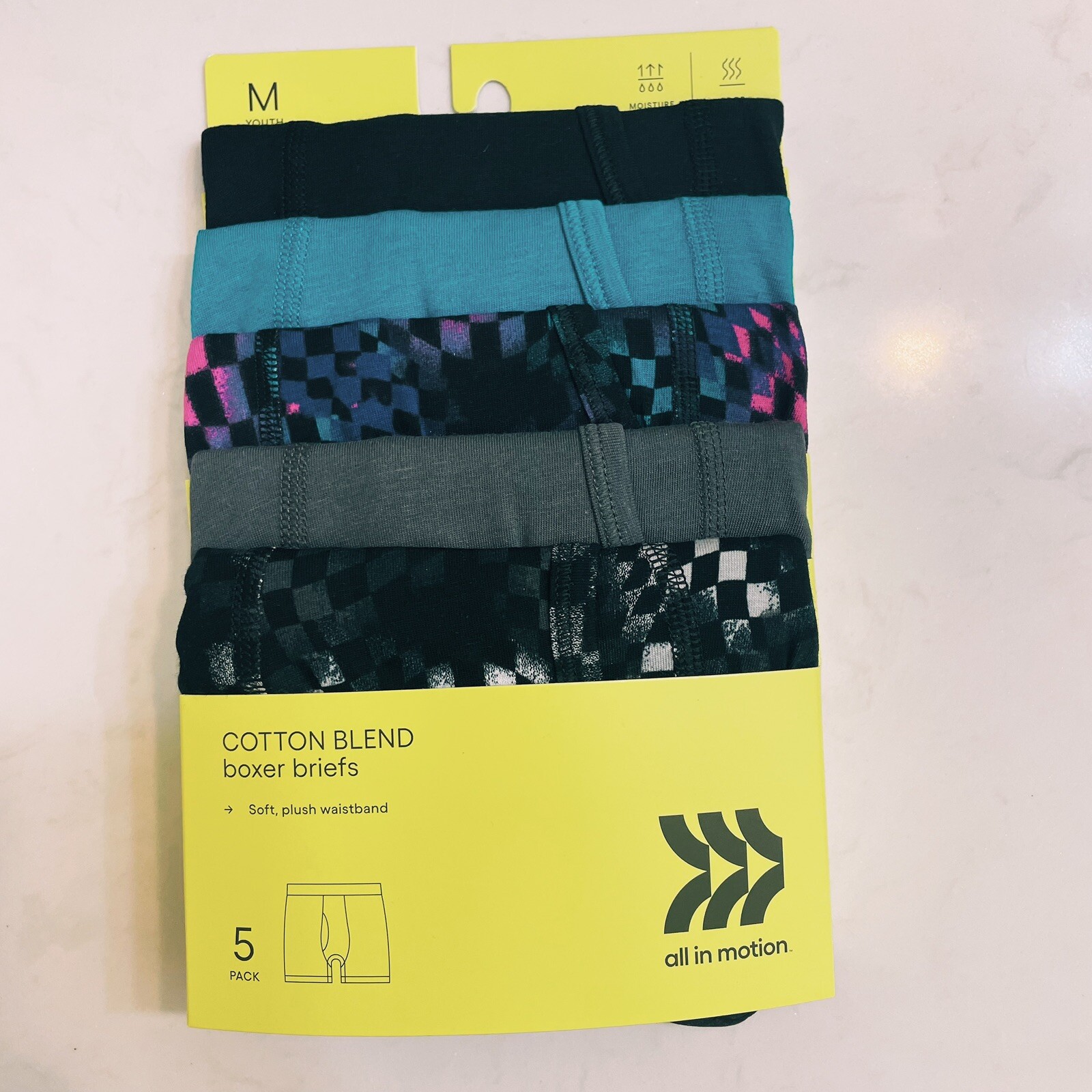 New Boy s Size 8 Medium All In Motion Boxer Briefs 2 Packs 10 Cotton Blend