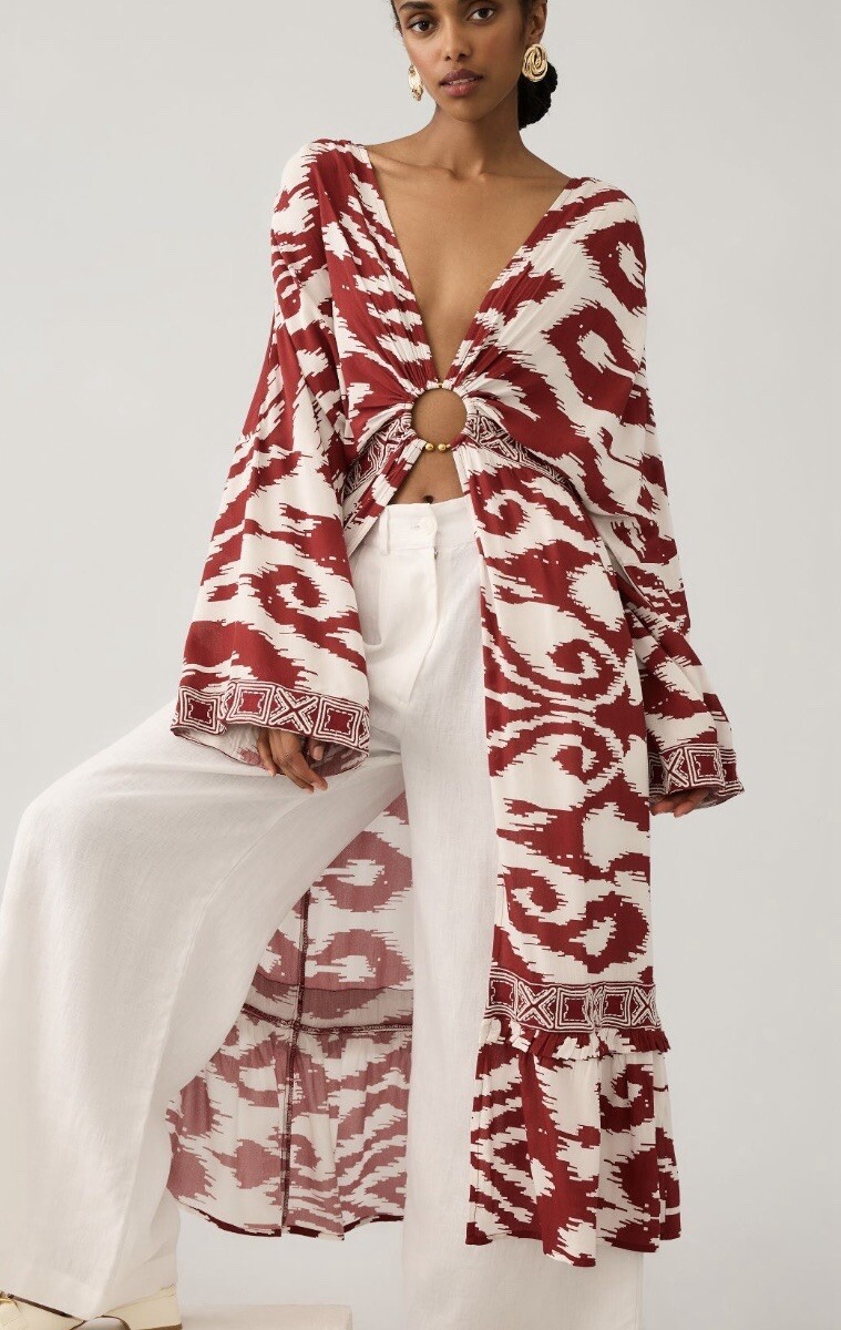 NWT Anthropologie Printed Front Ring Kaftan/ Cover-Up/ Kimono, Size XS/S