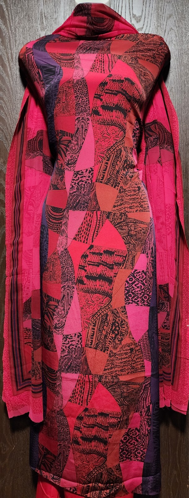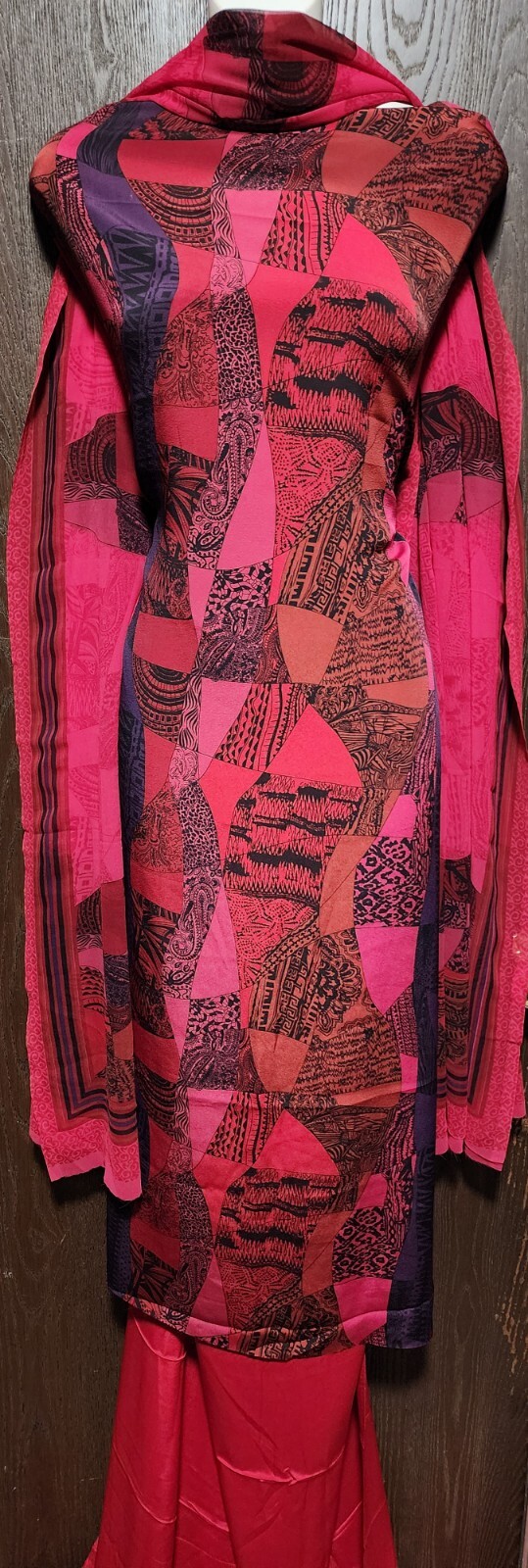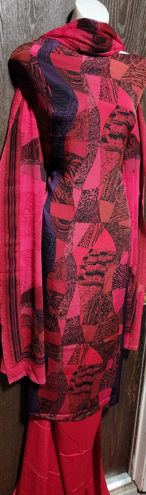 3 peice Unstitched open fabric Salwar Kameez Plazzo Suit bollywood dress Red