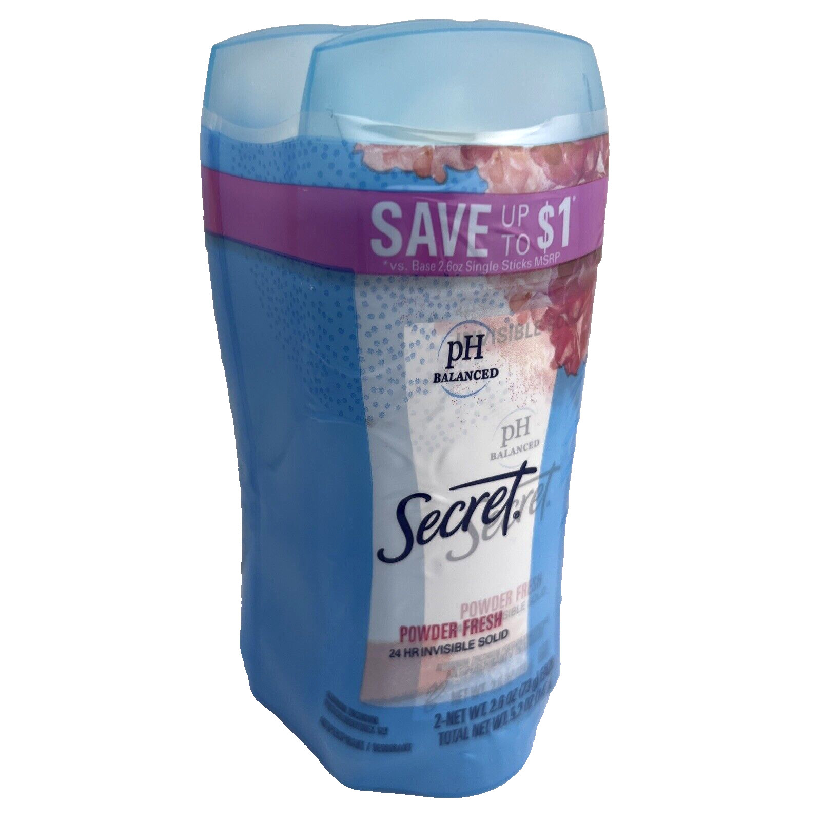 Secret Antiperspirant Deodorant, Invisible Solid POWDER FRESH, 2.6oz - TWIN PACK