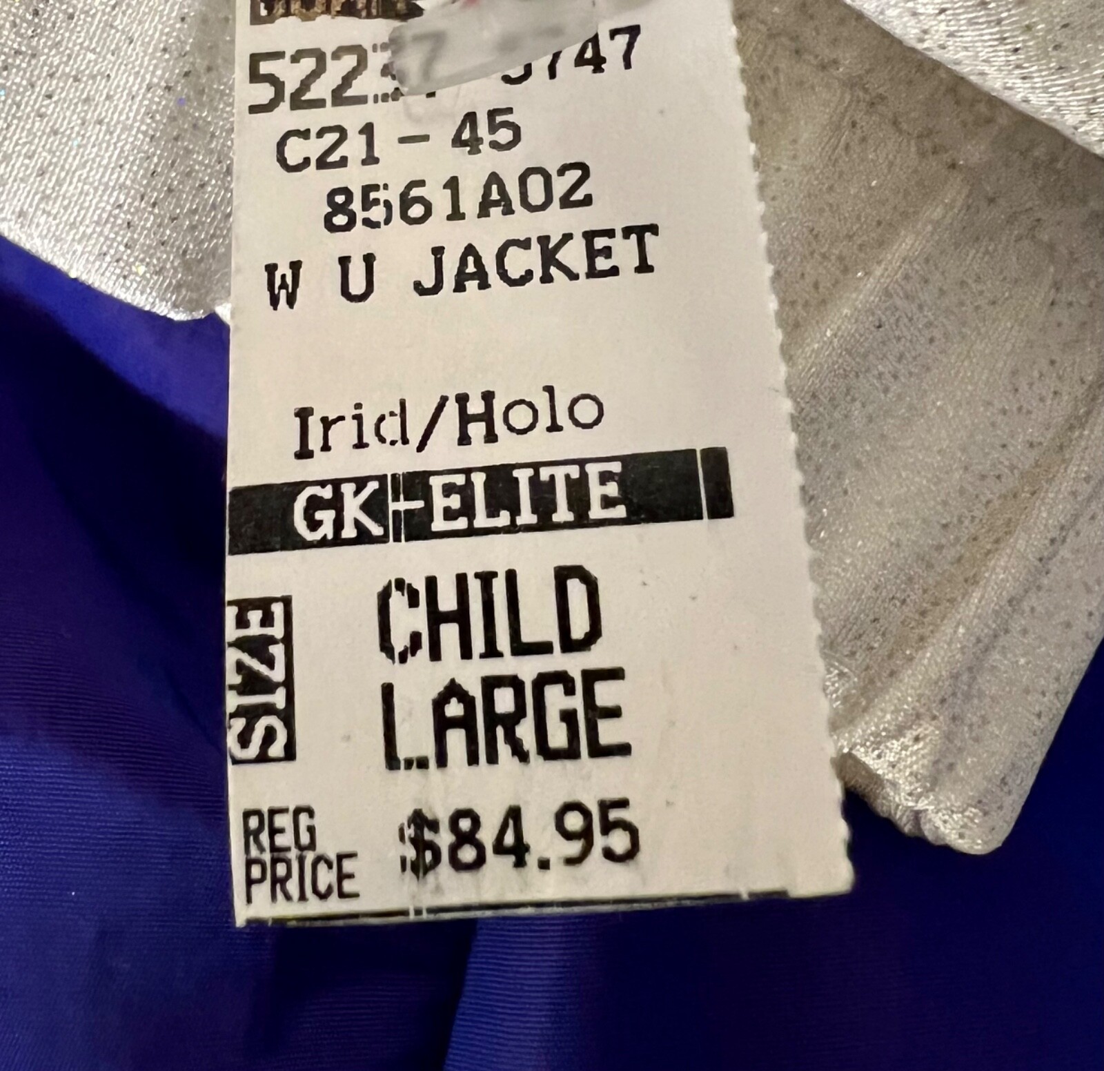 GK WARM UP CHILD LARGE PURPLE IRIDESCENT WHITE SPARKLE GYMNAST SKATE JACKET Sz L