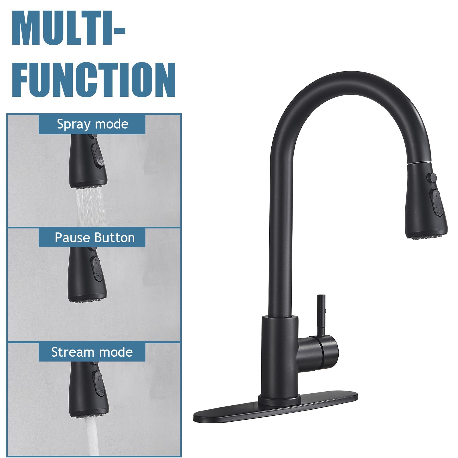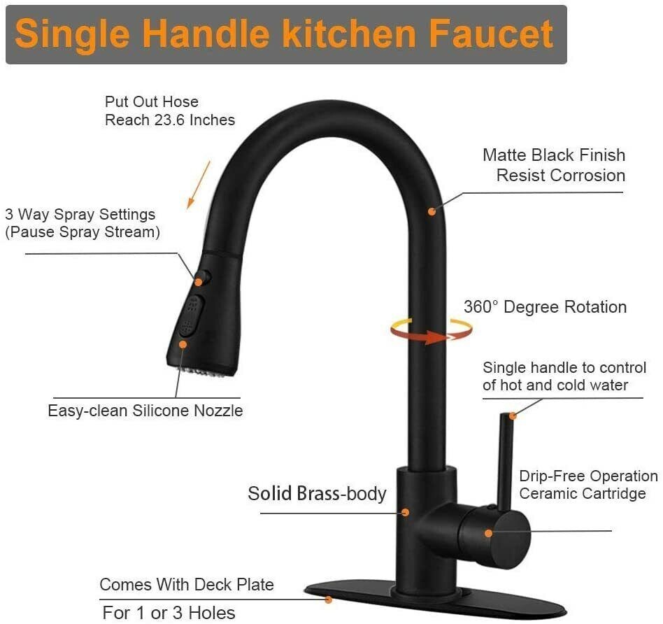 Kitchen Sink Faucet Pull Down Sprayer High Arc Single Handle Stainless Steel