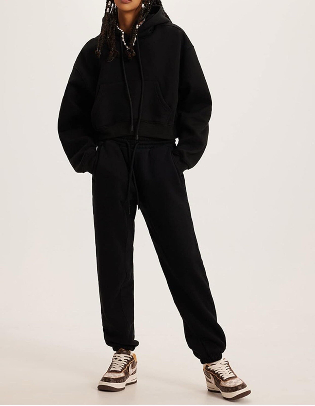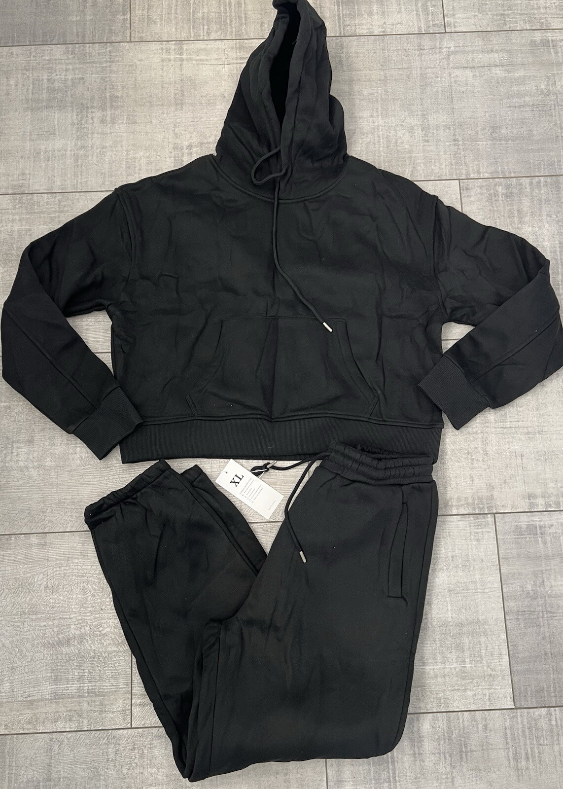 как выглядит NWT Women s Crop Hoodie and Jogger Pants Lounge Wear Set XL Black фото