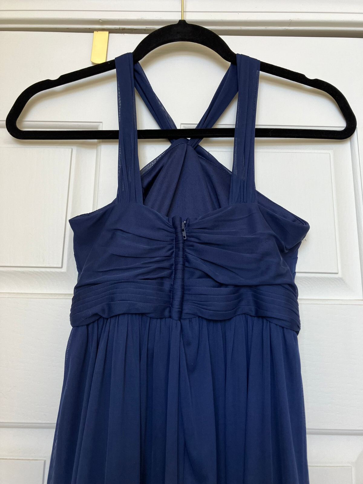 как выглядит David s Bridal Junior Bridesmaid Girls 10 dress Marine Blue Chiffon Long фото