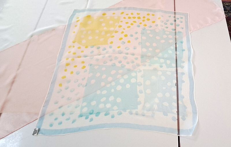 как выглядит 3 Vintage VERA Neumann Sheer Pastel Scarves Scarf White Pink Lt Blue/Yellow фото