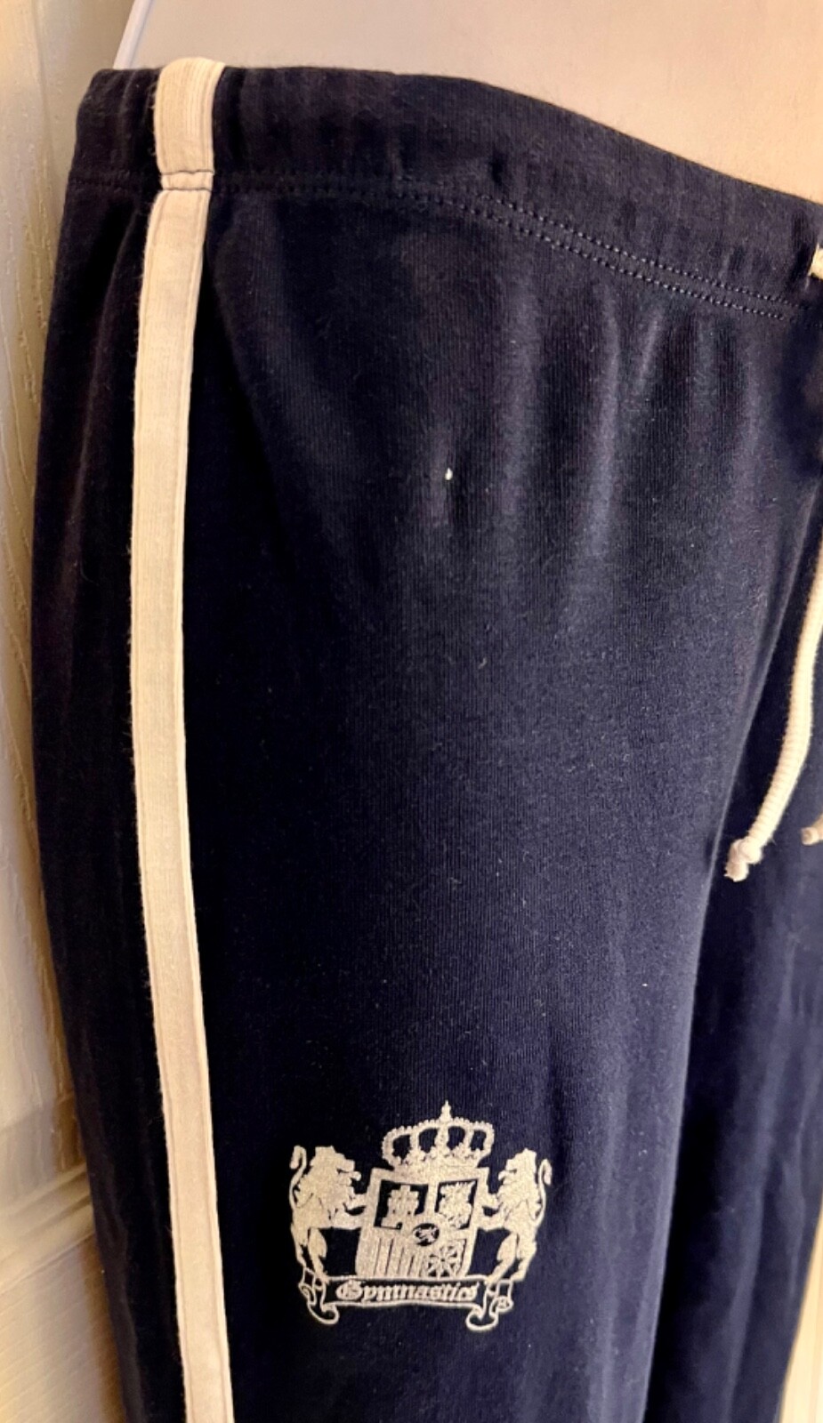 как выглядит GK GYMNASTICS CREST PRINT GRAPHIC GIRLS LARGE NAVY COTTON LOUNGE STRIPES PANTS фото