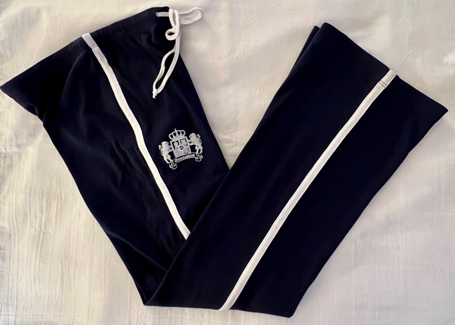 GK GYMNASTICS CREST PRINT GRAPHIC GIRLS LARGE NAVY COTTON LOUNGE STRIPES PANTS
