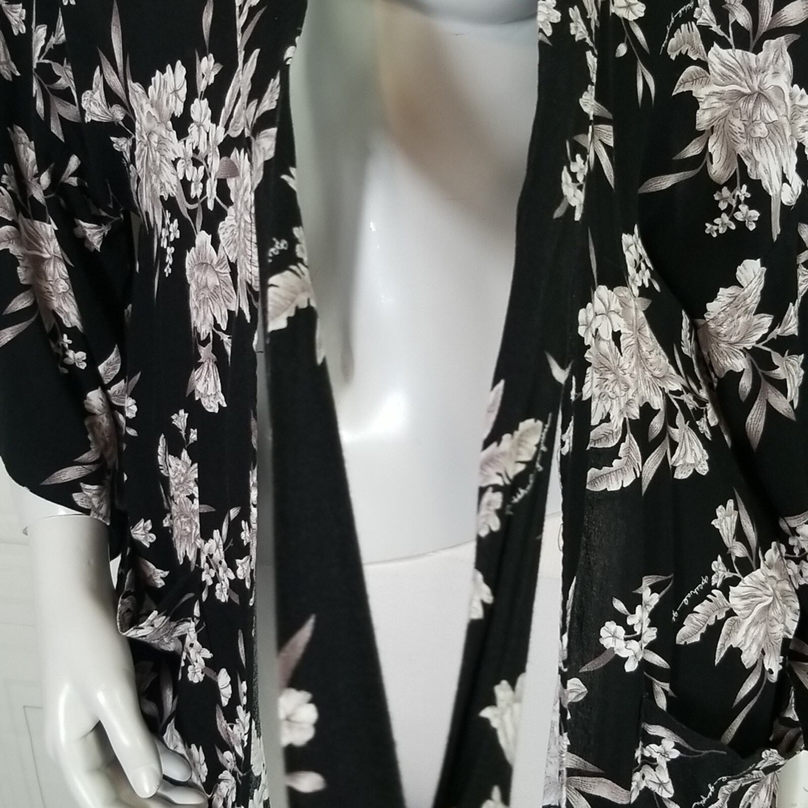 как выглядит Spiritual Gangster ONE SIZE Maya Kimono / Robe Black White Floral фото