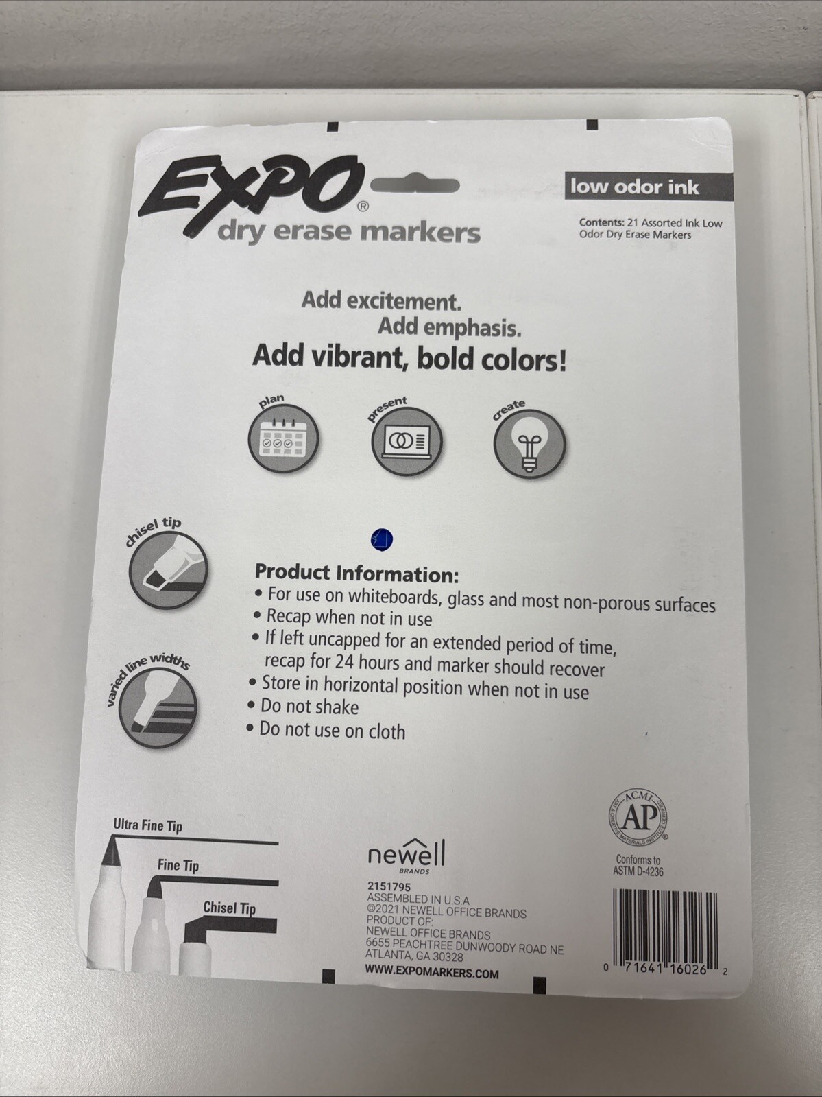 Expo 21 Pk Dry Erase Markers Chisel Tip Multicolored - New