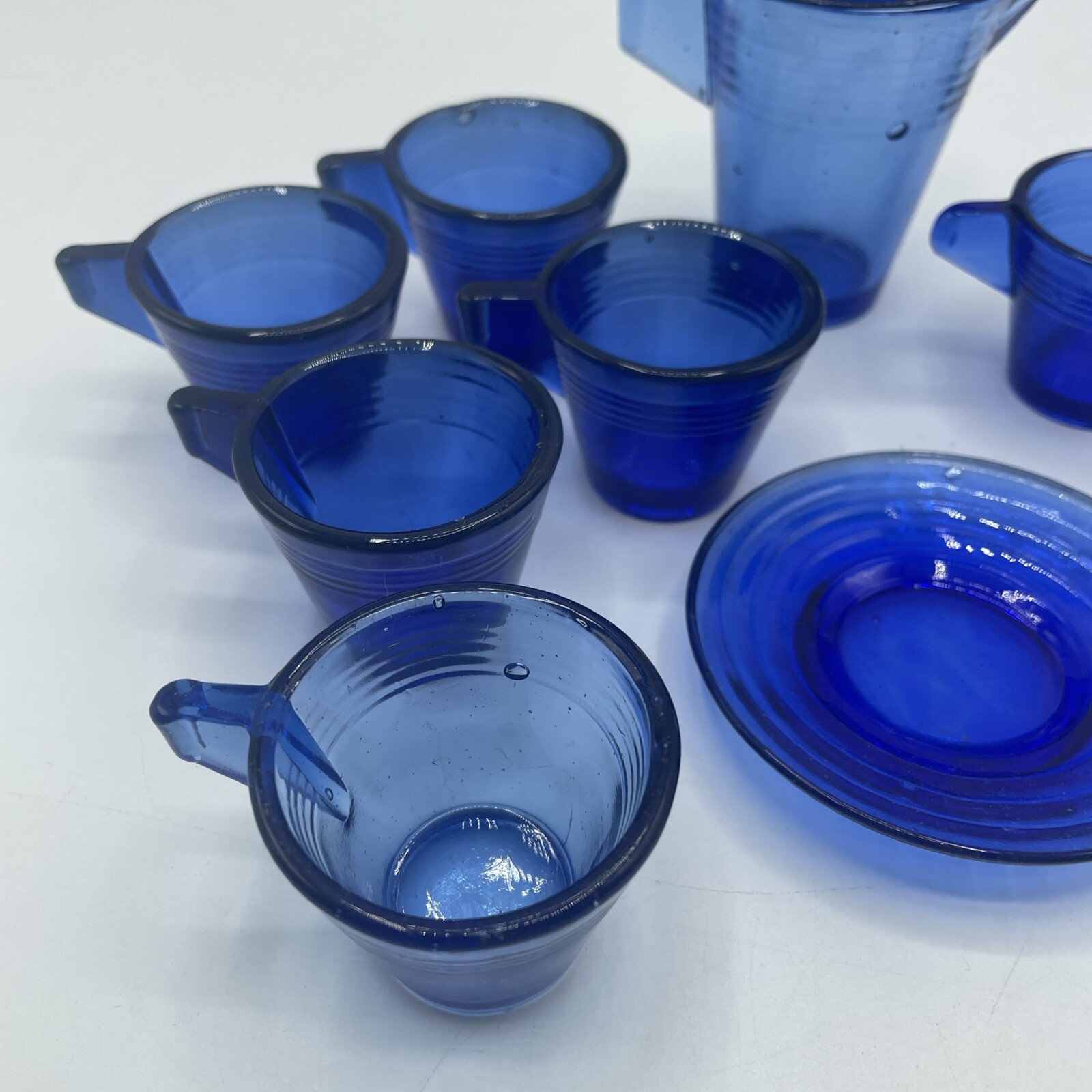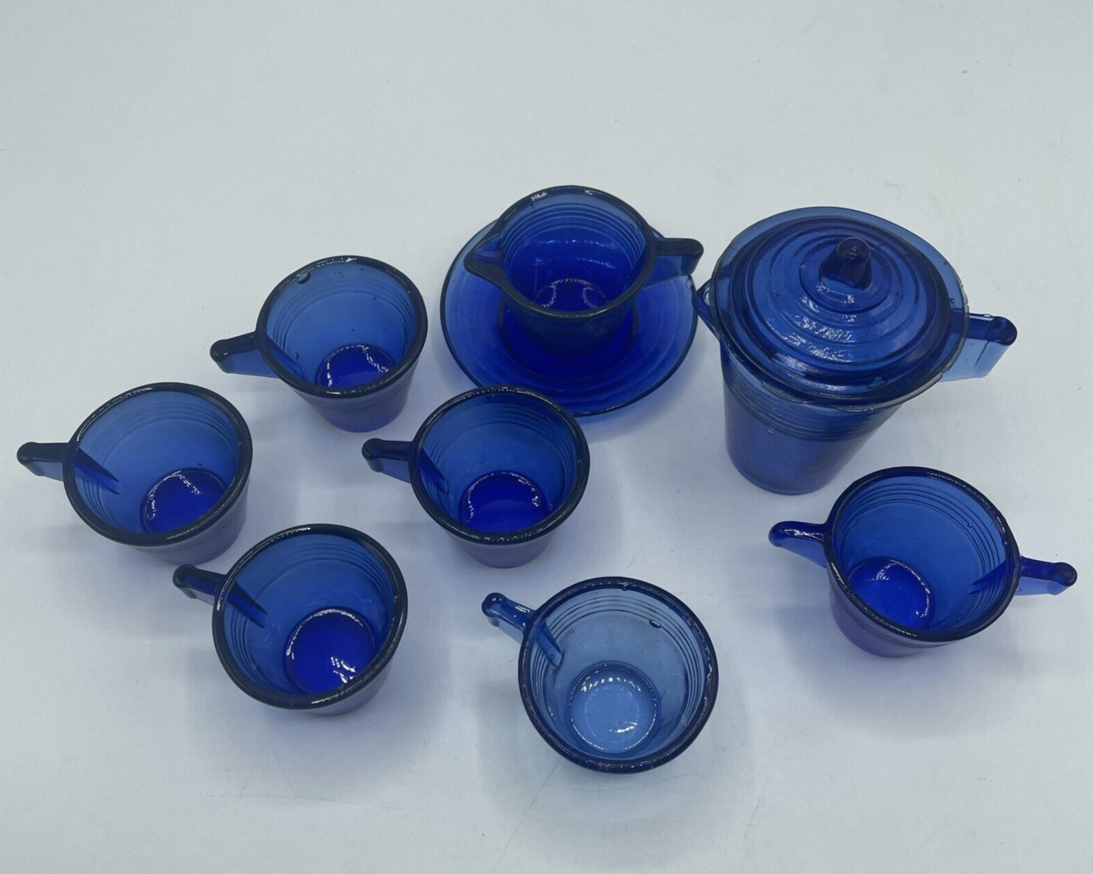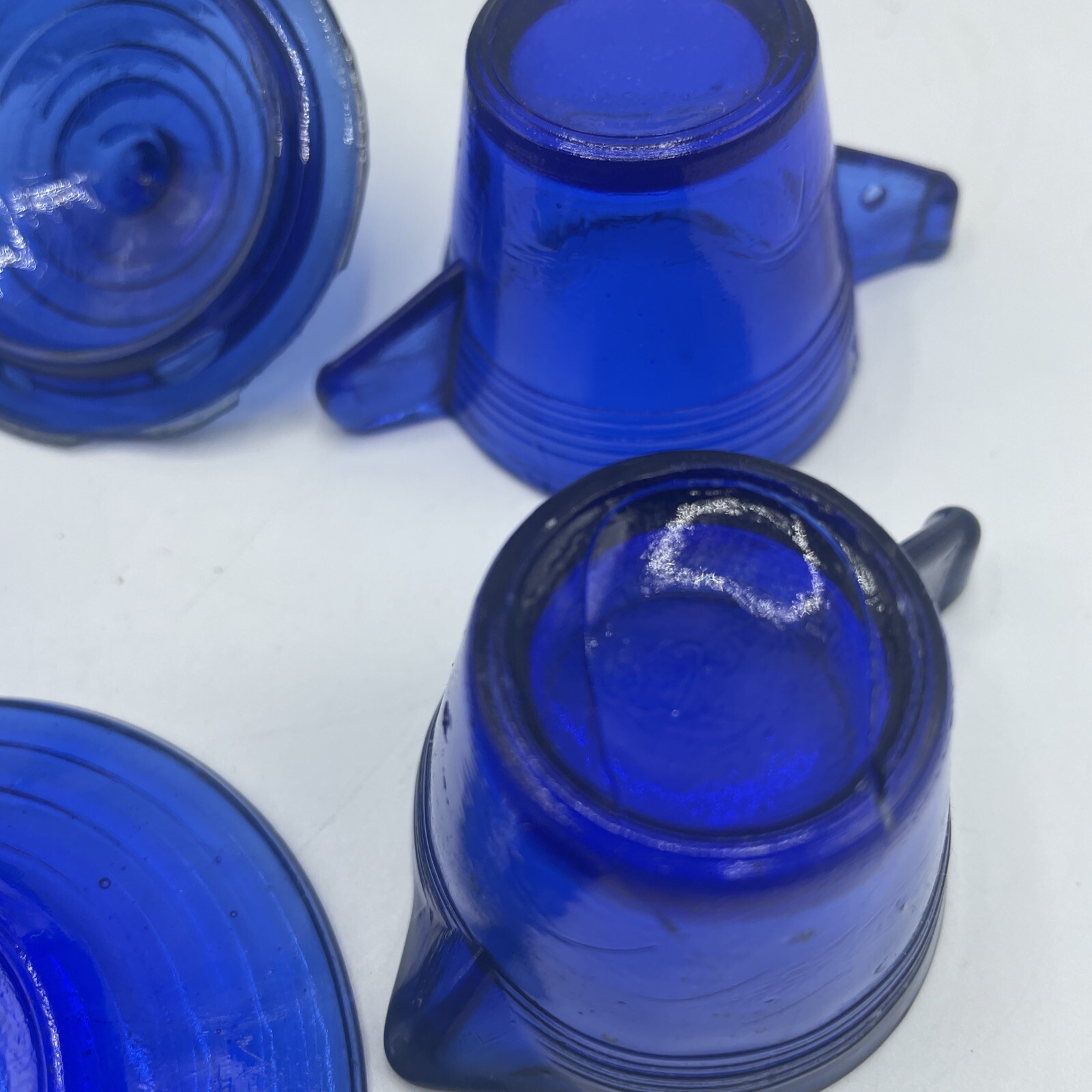 Vintage Akro Cobalt Blue Agate Child's Tea Set 1940's 10 Pieces Not Complete