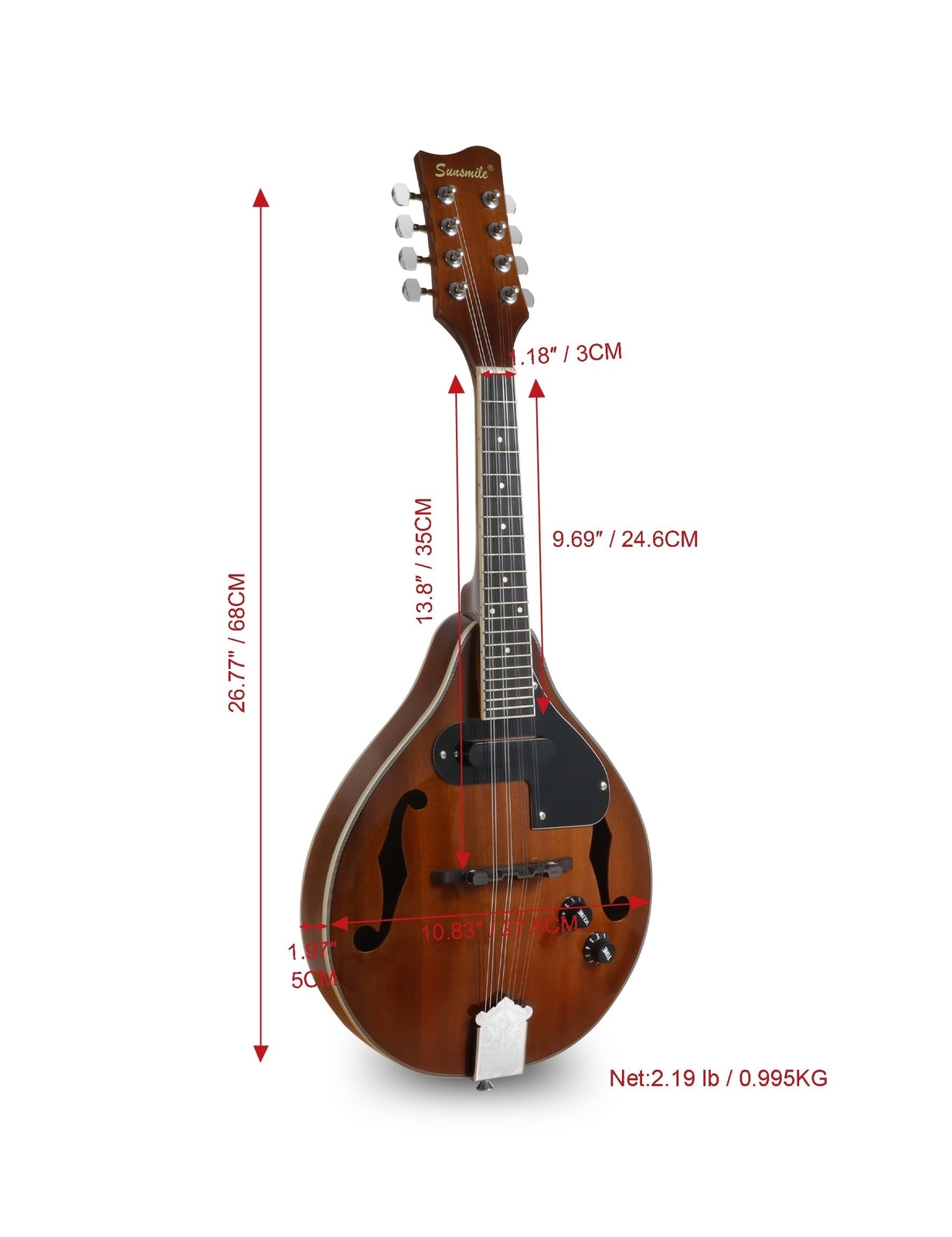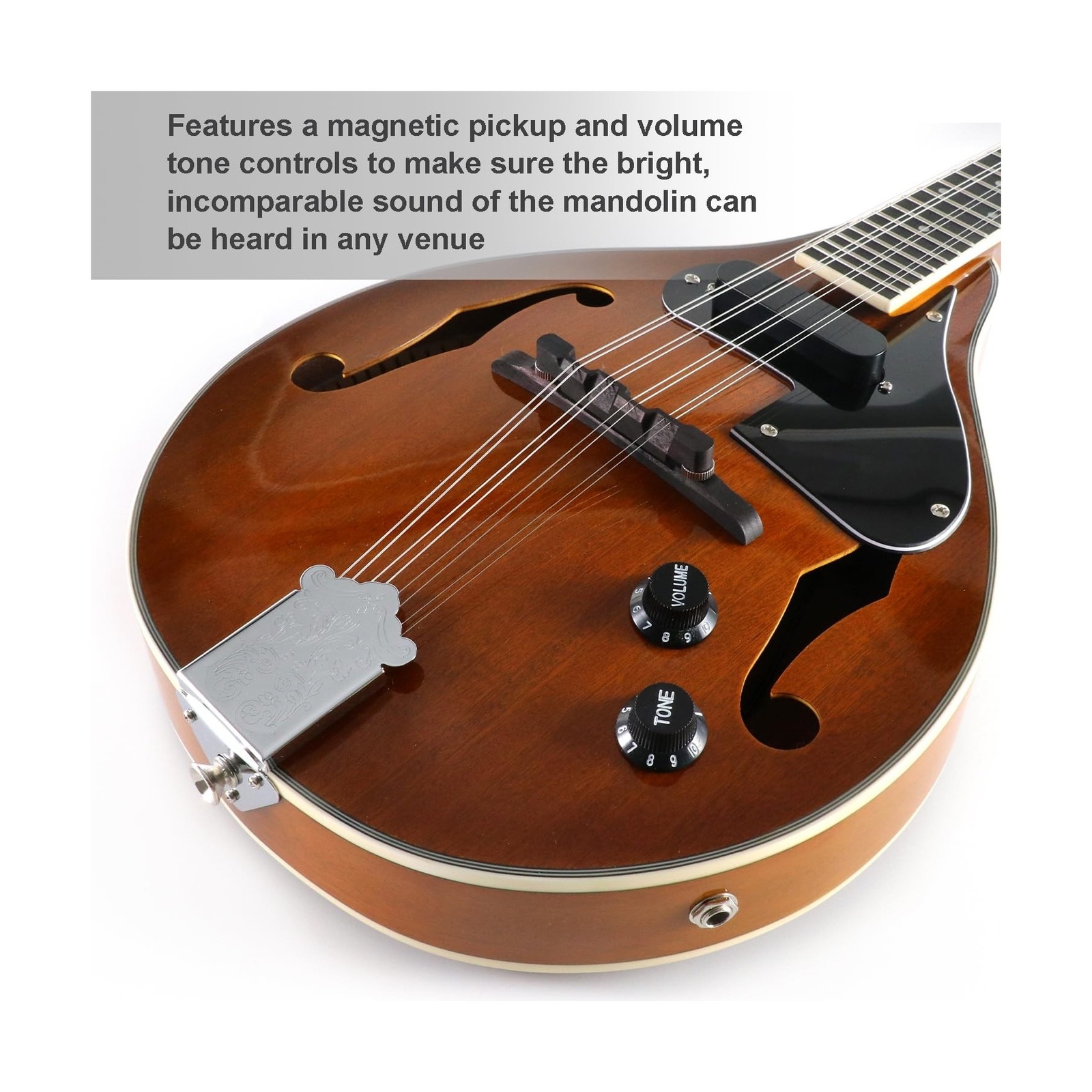 A-Style 8 String Acoustic-Electric Mandolin Instrument with Pickup Sapele Top...