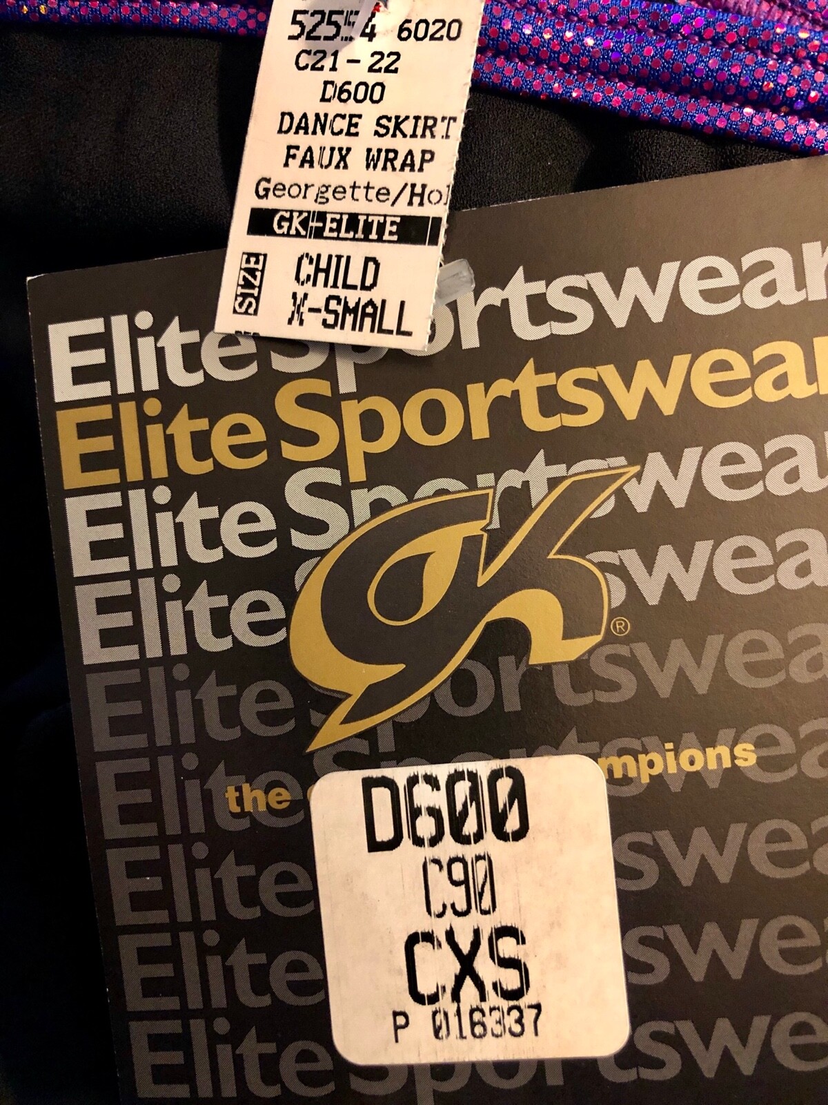 GK FAUX WRAP SKIRT CHILD X-SMALL BLACK GEORGETTE FOIL WAIST DANCE BALLET CXS NWT