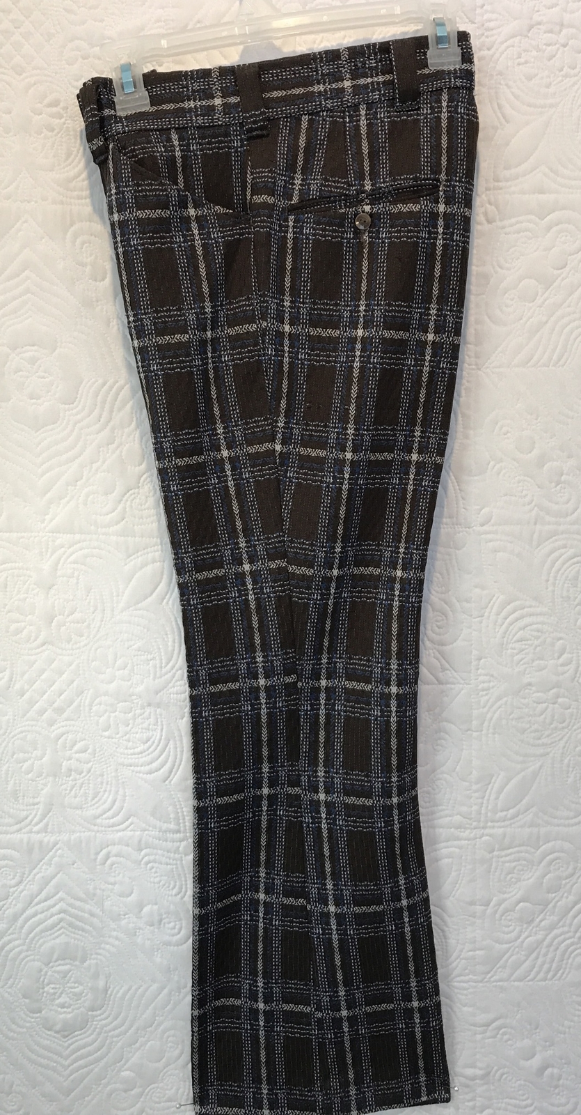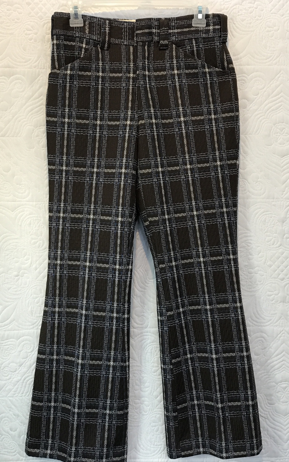 Vintage Leisure Pants Golf Polyester Brown Blue Plaid Check Party Disco youth