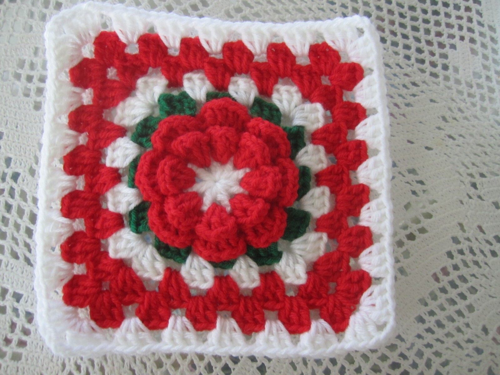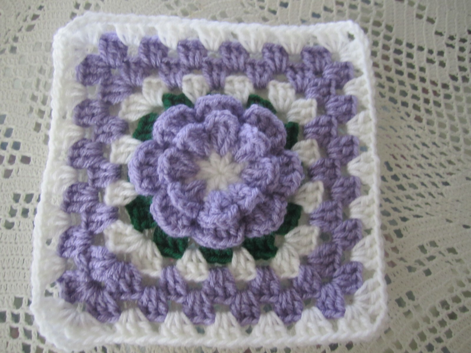 12-8 CROCHETED RAISED FLOWER GRANNY SQUARES 4 AFGHAN, AFGHANS ASSORTED