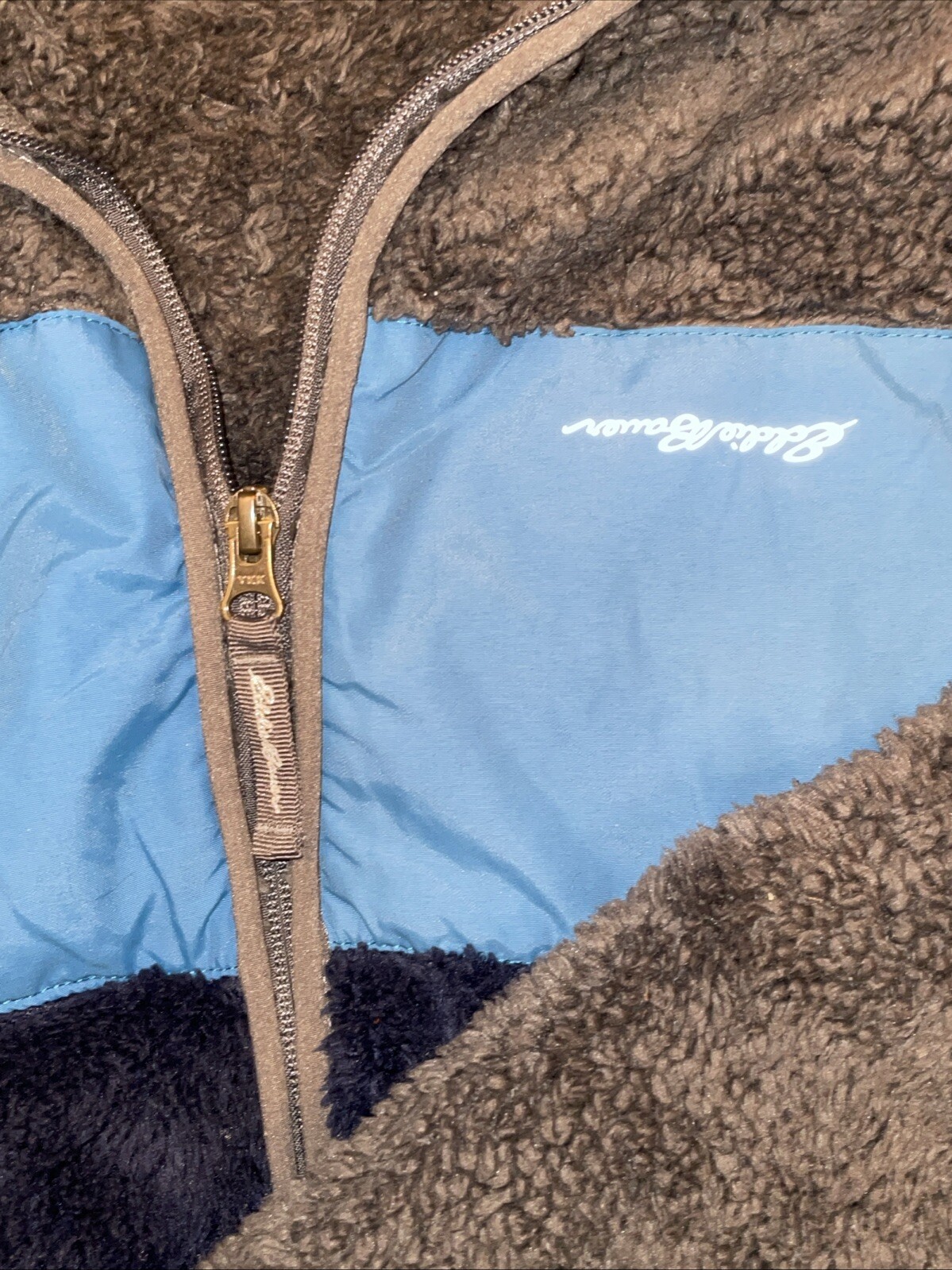 как выглядит Eddie Bauer Hooded Fleece Jacket Kids Size L 14/16 Grey/Blue With Pockets. фото