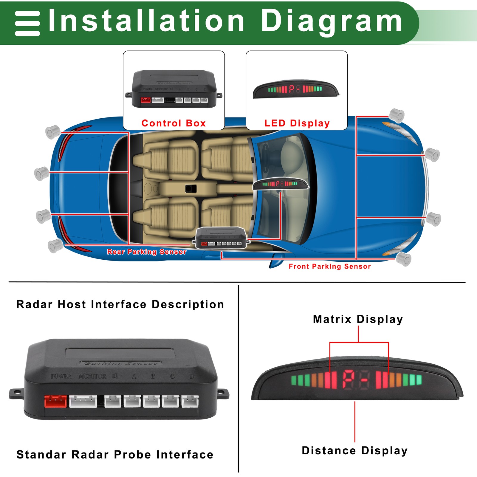 как выглядит Universal Piece of 4 Car Reverse Backup Radar System Parking Sensors Silver Tone фото