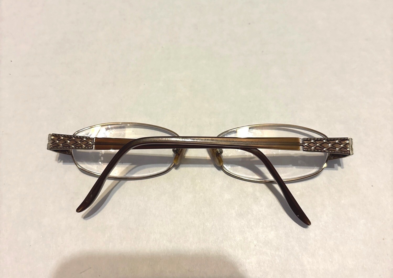 Vtg Marchon Oval Gold-Tone Eyeglasses With Intricate Side Details Frames only