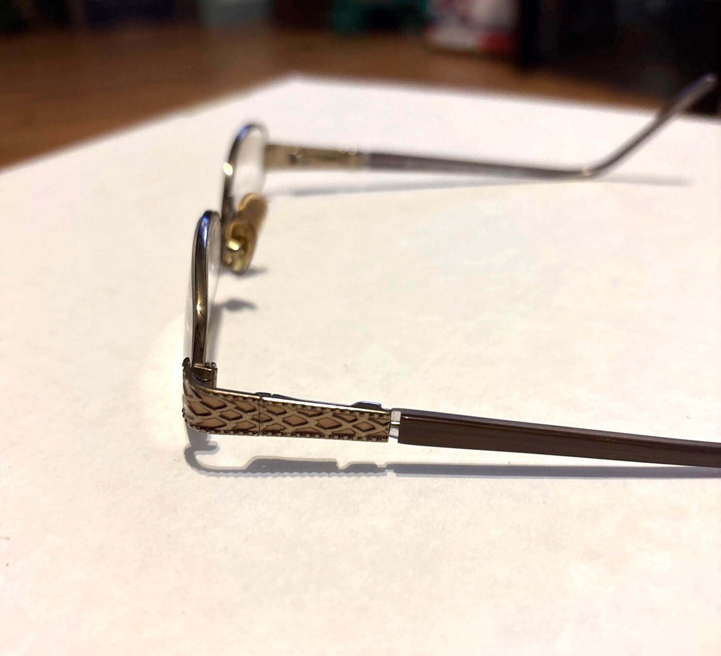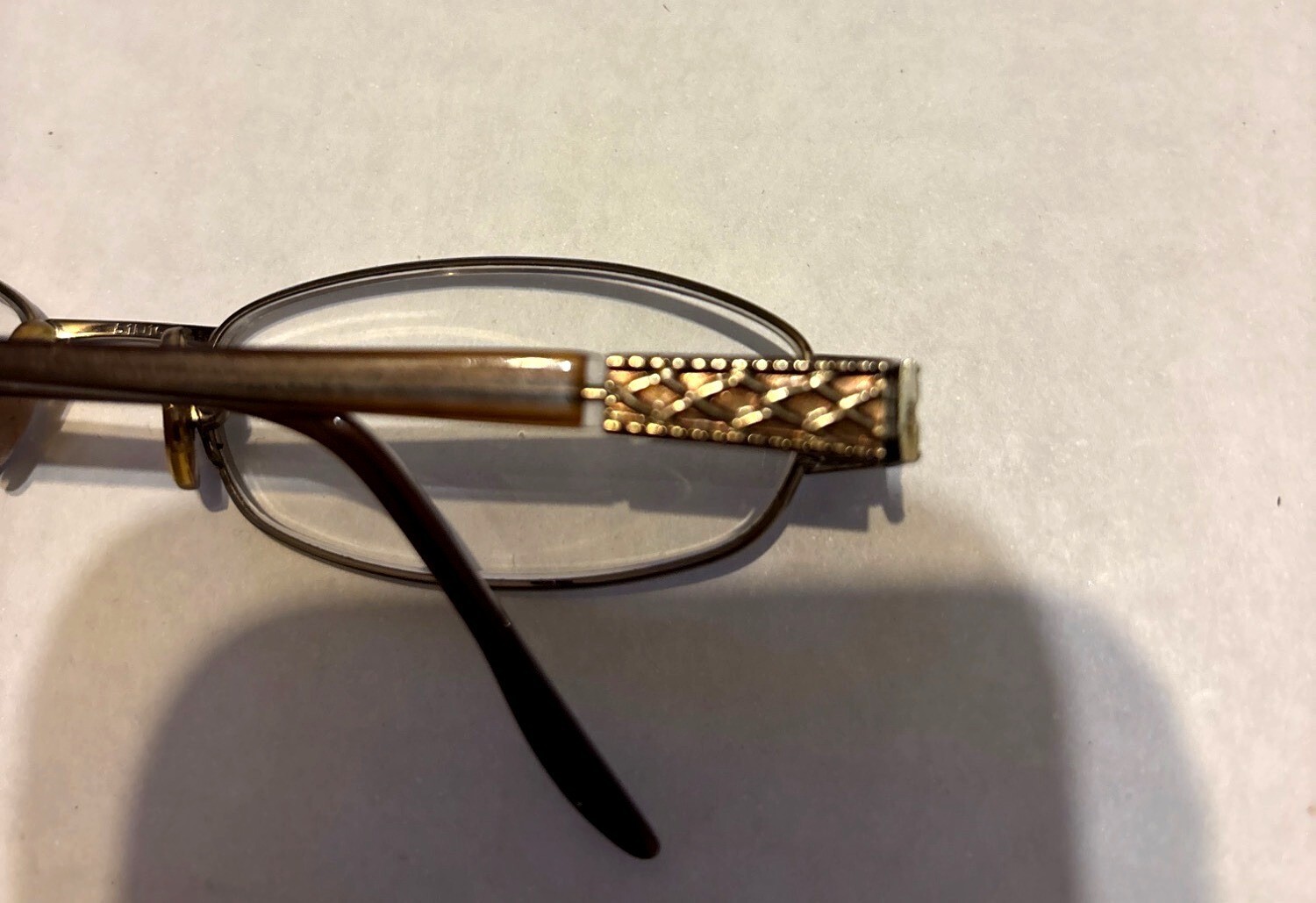 как выглядит Vtg Marchon Oval Gold-Tone Eyeglasses With Intricate Side Details Frames only фото