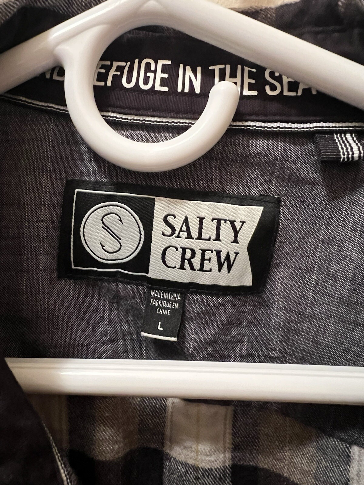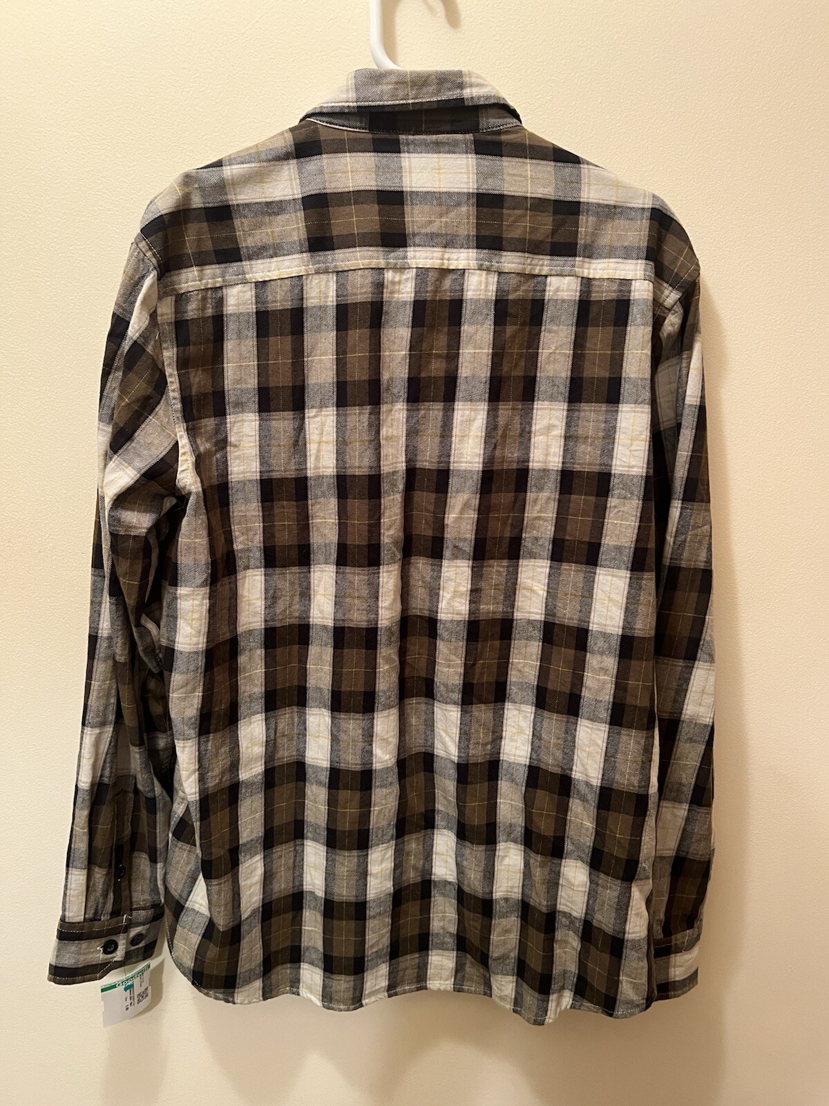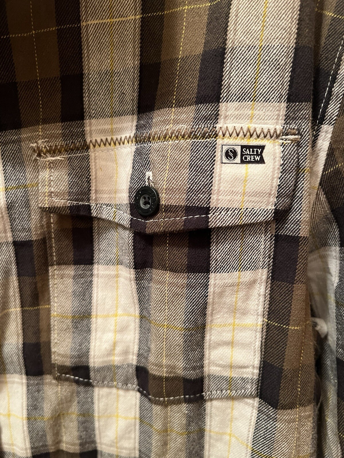 как выглядит Salty Crew Tan Brown Plaid Flannel Mens L Button Up Shirt Long Sleeve Cotton EUC фото