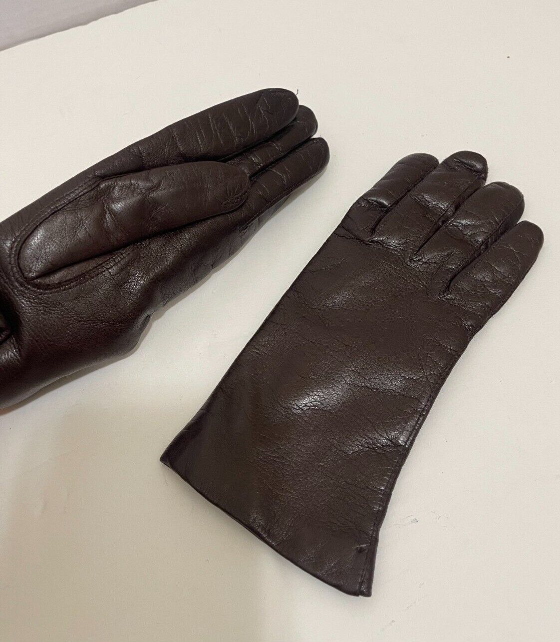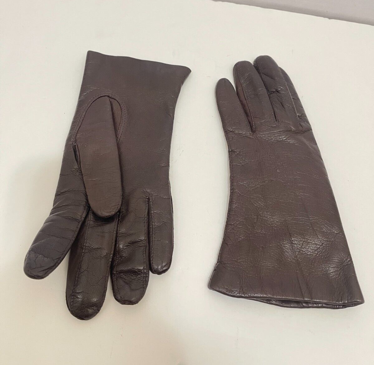 как выглядит VTG MACYS Brown Leather Genuine Fur Lined Womens Gloves Italy Made SZ 6.5 фото