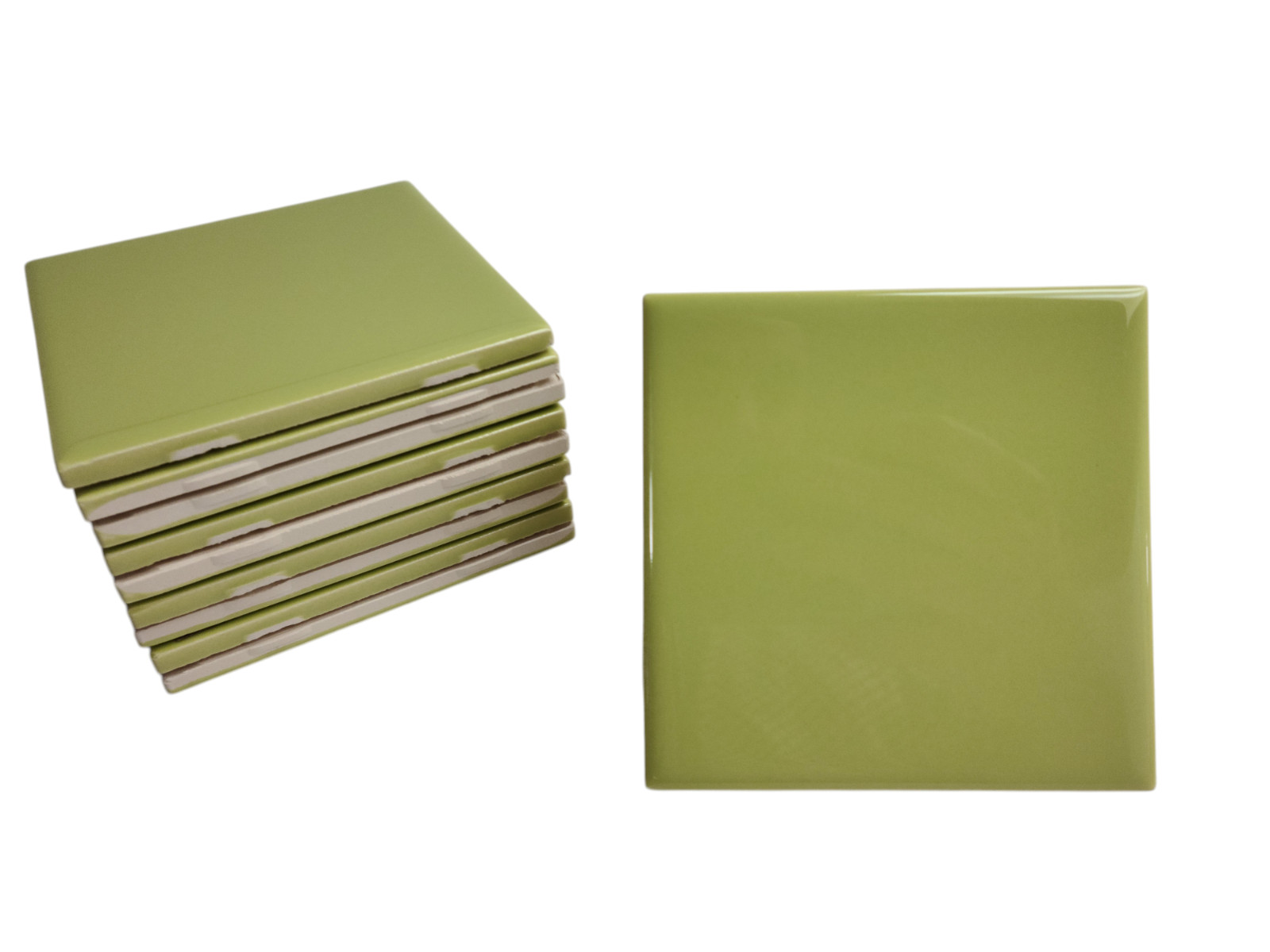 Lime Green Ceramic Tile Shower Backsplash 4.25 in Subway Mid Century Modern