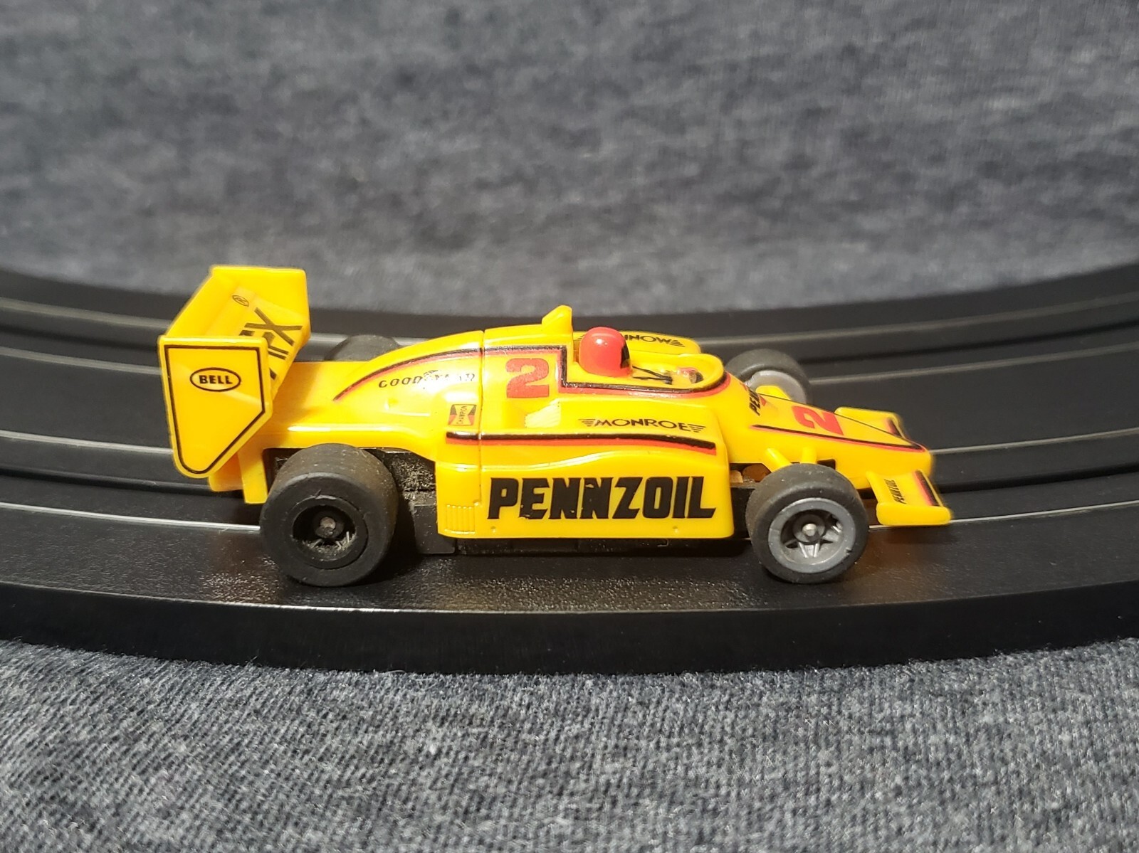 AFX TOMY TURBO PENNZOIL 2 INDY F1 YELLOW SLOT CAR