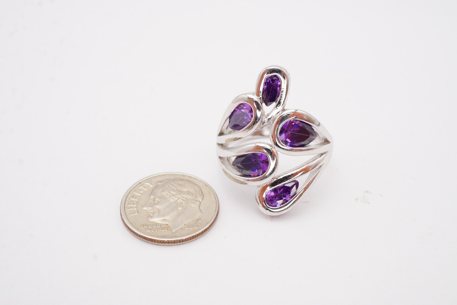 как выглядит Sterling Silver 925 Purple Cubic Zirconia Ring Size 8 фото