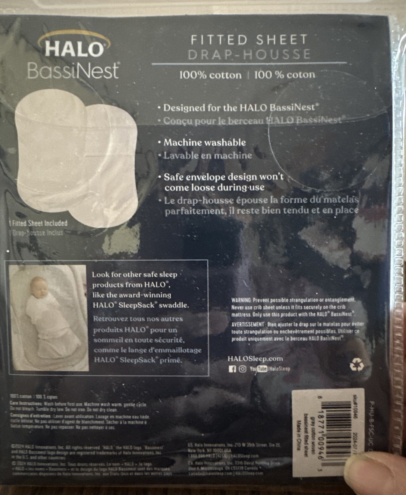 New HALO Bassinest Swivel Glide Sleeper Fitted Sheet Gray 100 Cotton