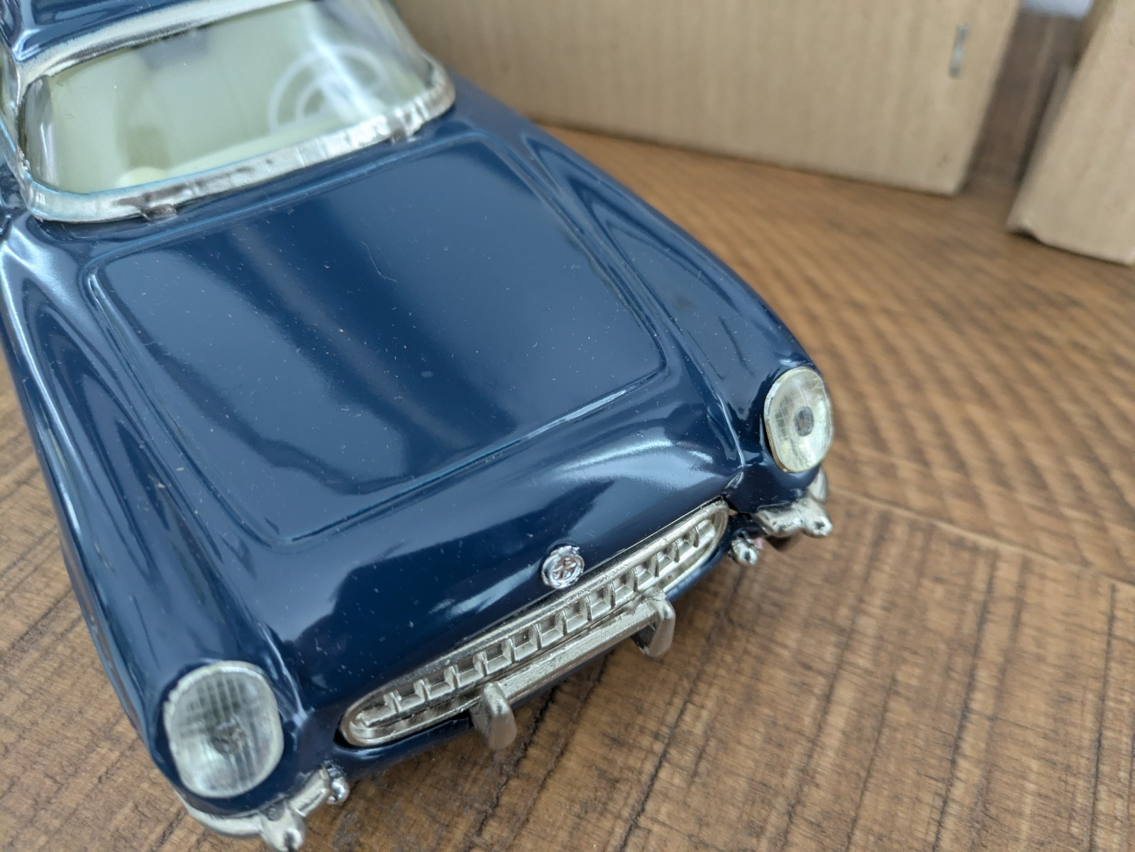 Vintage Metal Deluxe Coup Blue Corvette Friction Car MF316 New In Box