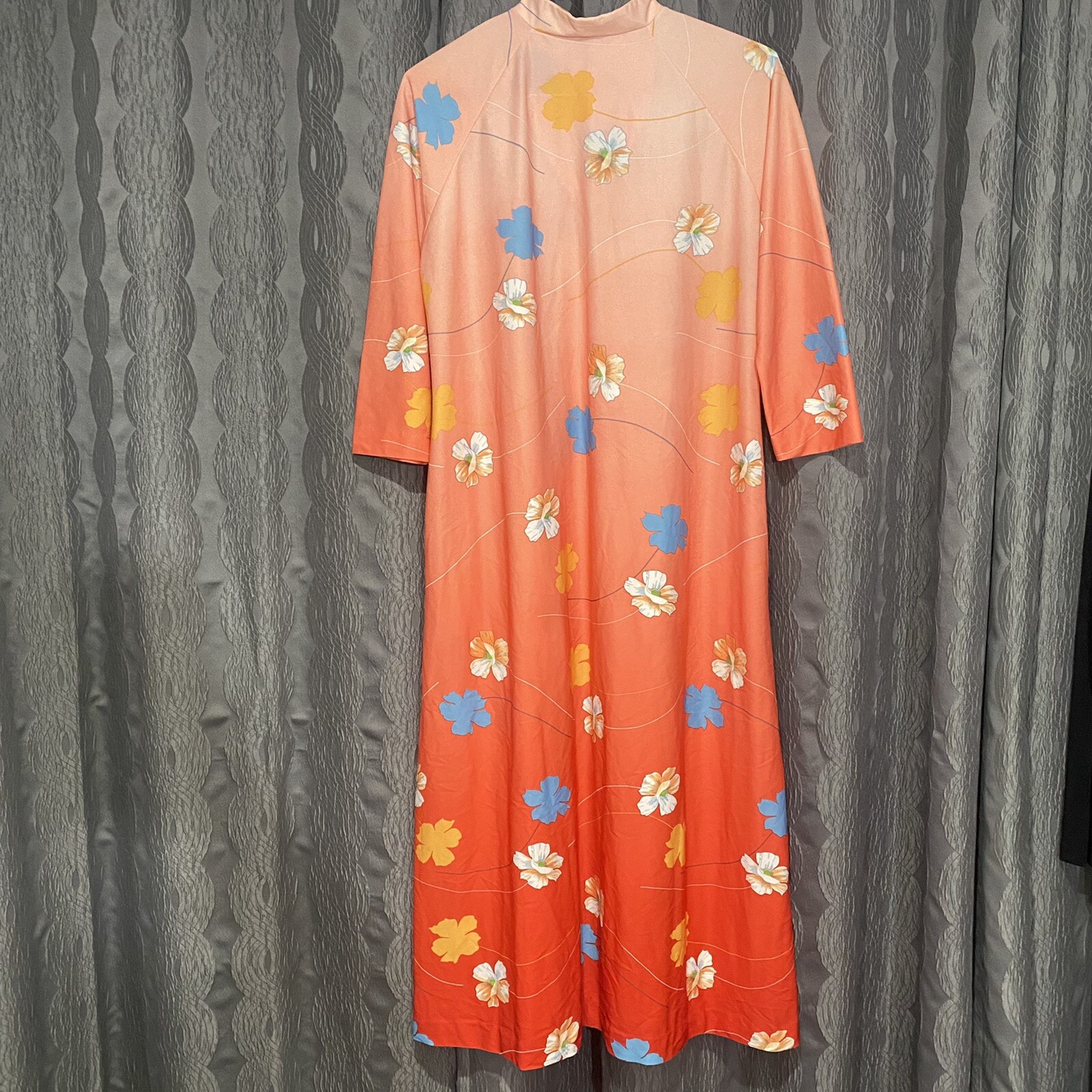 как выглядит VTG Travel-Lite by Boutique Orange Ombre Leaf Gown Negligee READ Peach Robe фото