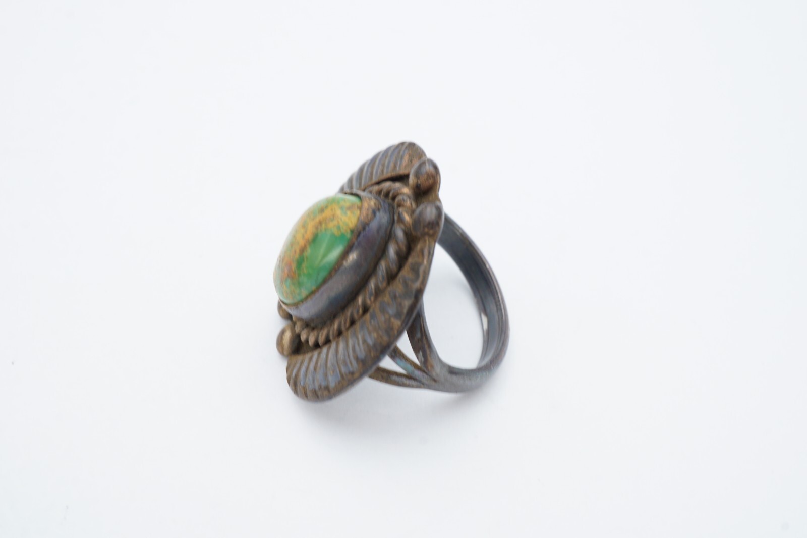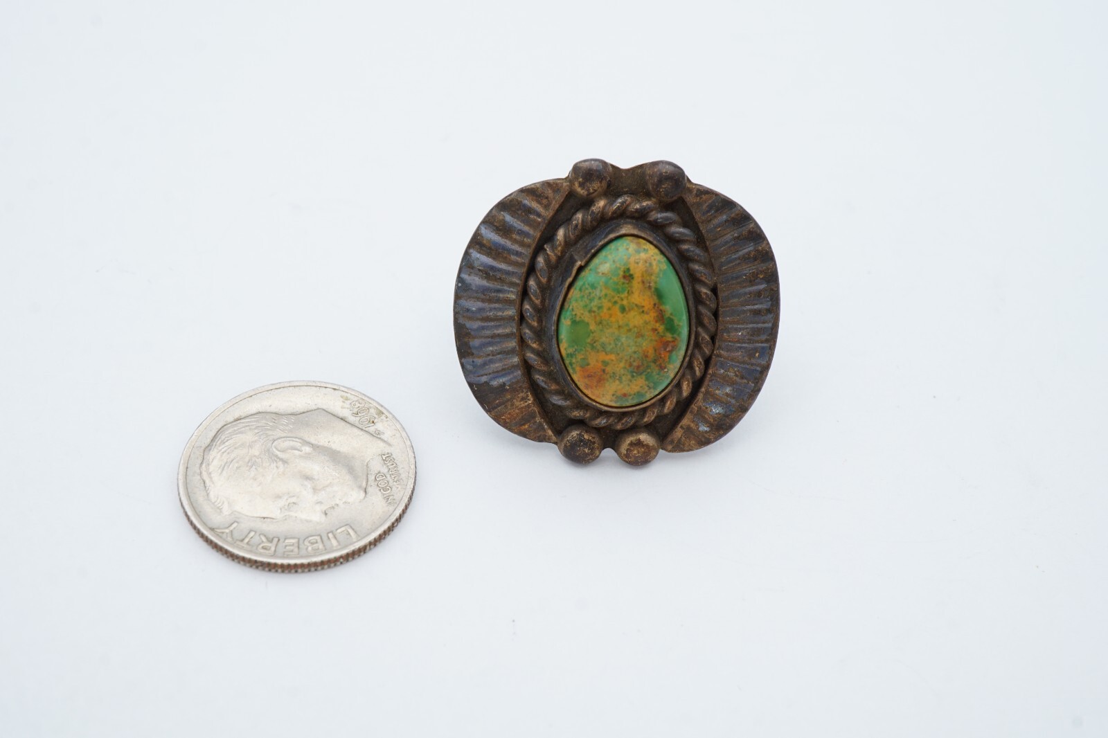 как выглядит Vintage Native American Navajo Sterling Silver Green Turquoise Ring Size 4 фото