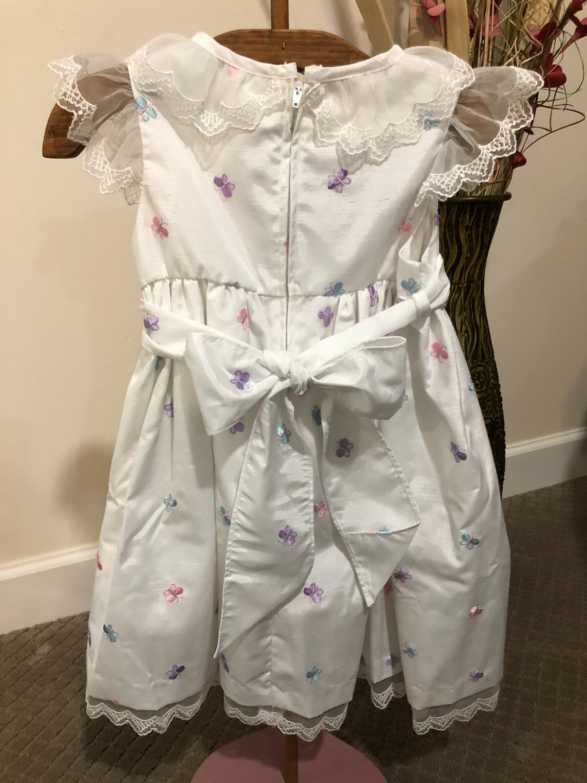 Vintage Little Bitty White Ruffle Lace Butterfly Toddler girls Dress size 24 MO.