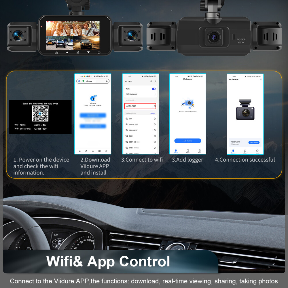 360 Dash Cam Recorder 4 Channel FHD 1080P Car Camera DVR Vehicle Video G-Sensor
