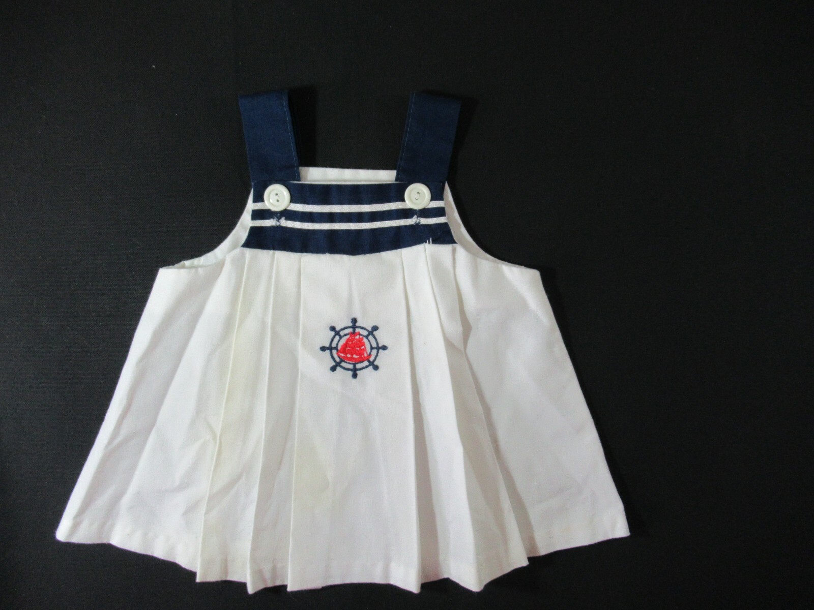 Vintage 80s Nautical Sailor Dress Baby Girl Size 24 Months Sundress Summer