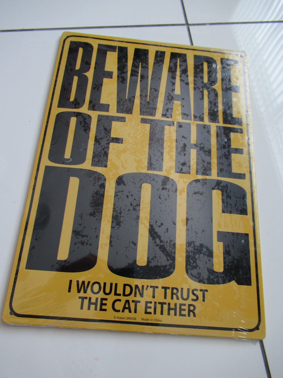 Beware of The Dog I Wouldn't Trust the Cat Either Metal Tin Sign YELLOW SEALED