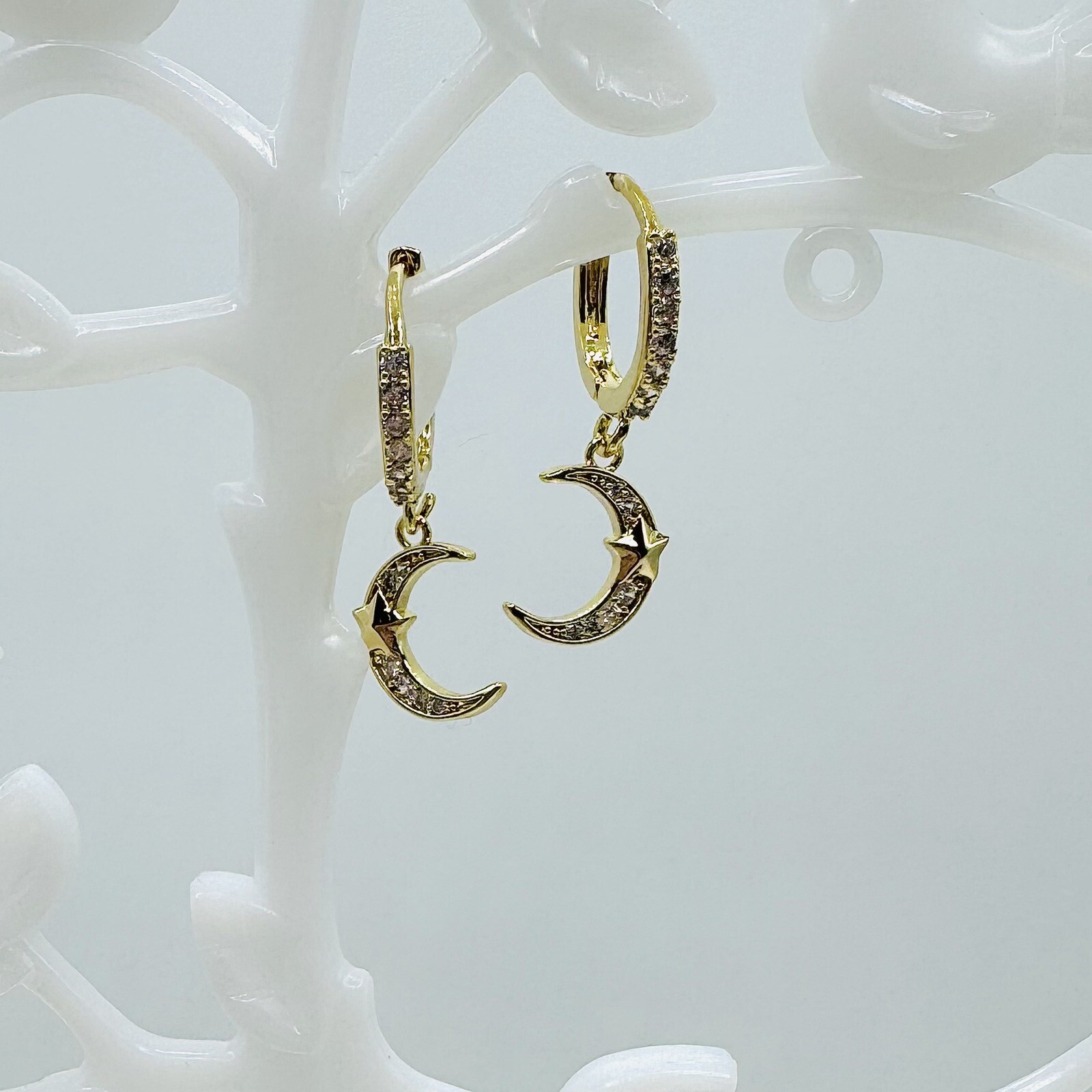 Moon Star Inlaid zirconia Hoop Drop Earrings