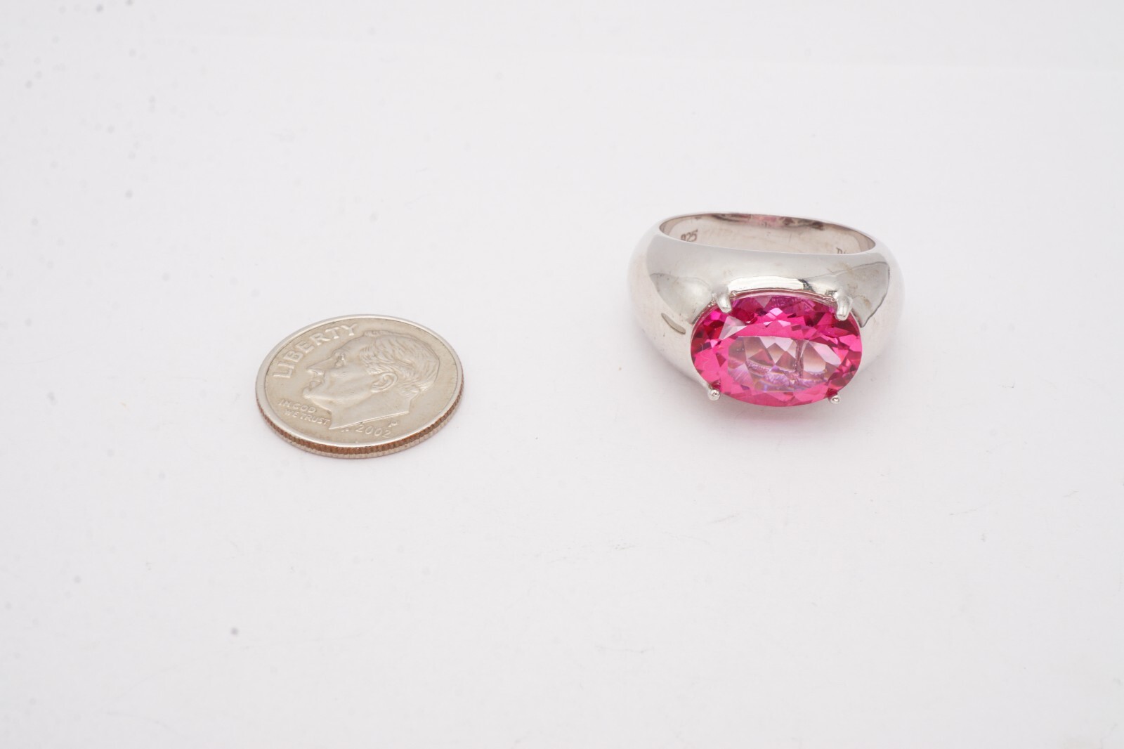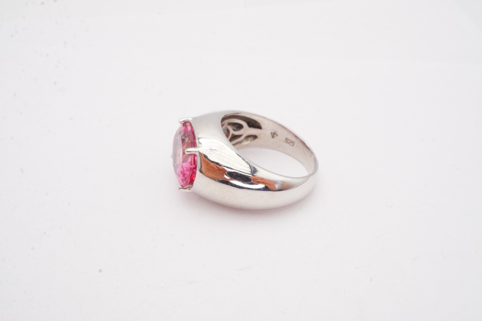 Sterling Silver 925 Lab-Created Pink Sapphire Ring Size 9